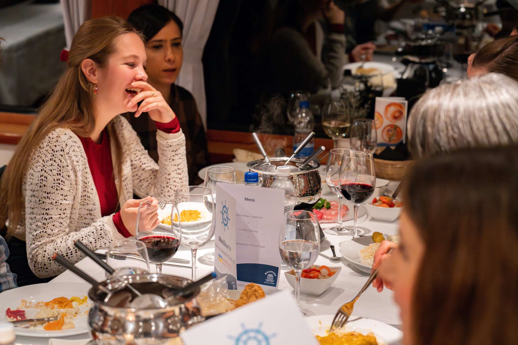 Ein besonderer Abend auf dem Wasser: Lassen Sie sich während einer stimmungsvollen Fahrt mit einem köstlichen Fondue Chinoise verwöhnen.