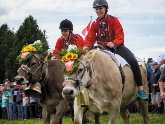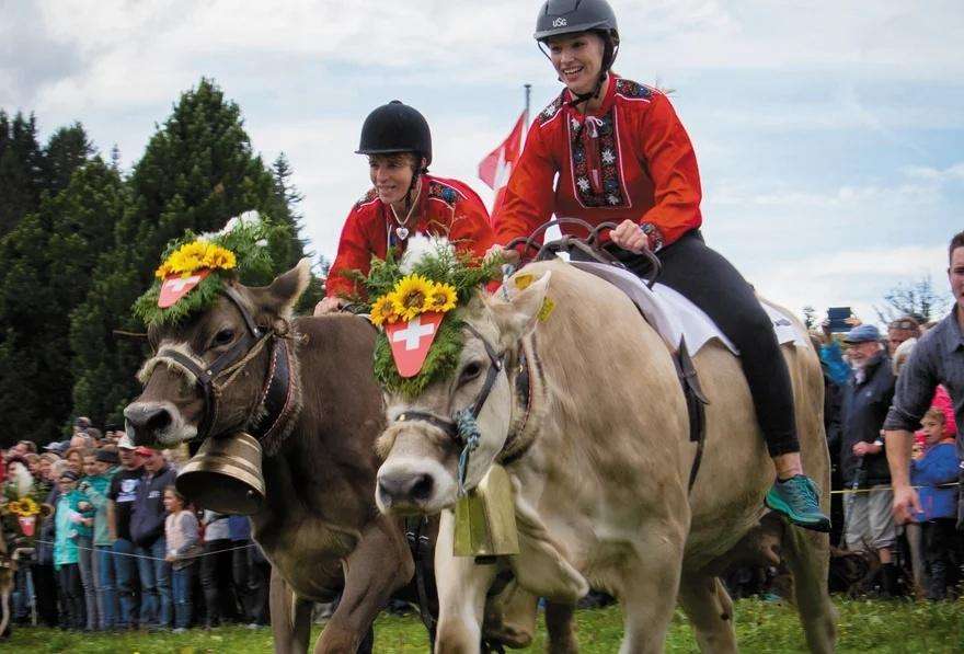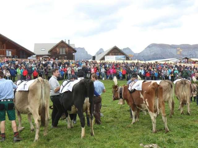 Traditioneller Alpchäsmarkt mit dem schweizweit einzigartige Kuhrennen, an welchem ausschliesslich weibliche Jockeys auf zwei Runden um die Krone vom Kuh-Grandprix streiten.