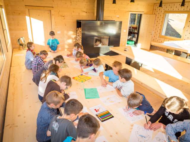 Ob für ein Schullager oder für ein Wochenende für Firmen oder Vereine – die Alpenlodge Prod bietet eine Übernachtungsmöglichkeit in einmaliger Atmosphäre. Die Gruppenunterkunft hat 48 Betten (2 x 10er; 4 x 6er und 2 x 2er-Zimmer). Die Küche ist mit Induktionsherd, Steamer, Backofen, einem Tiefkühlschrank, zwei Kühlschränken und einer Abwaschmaschine ausgestattet. Der gemütliche Ess- und Aufenthaltsraum hat ein Cheminée. Der Ski- und Trockenraum eignet sich im Winter ideal zur Aufbewahrung von Skischuhen.