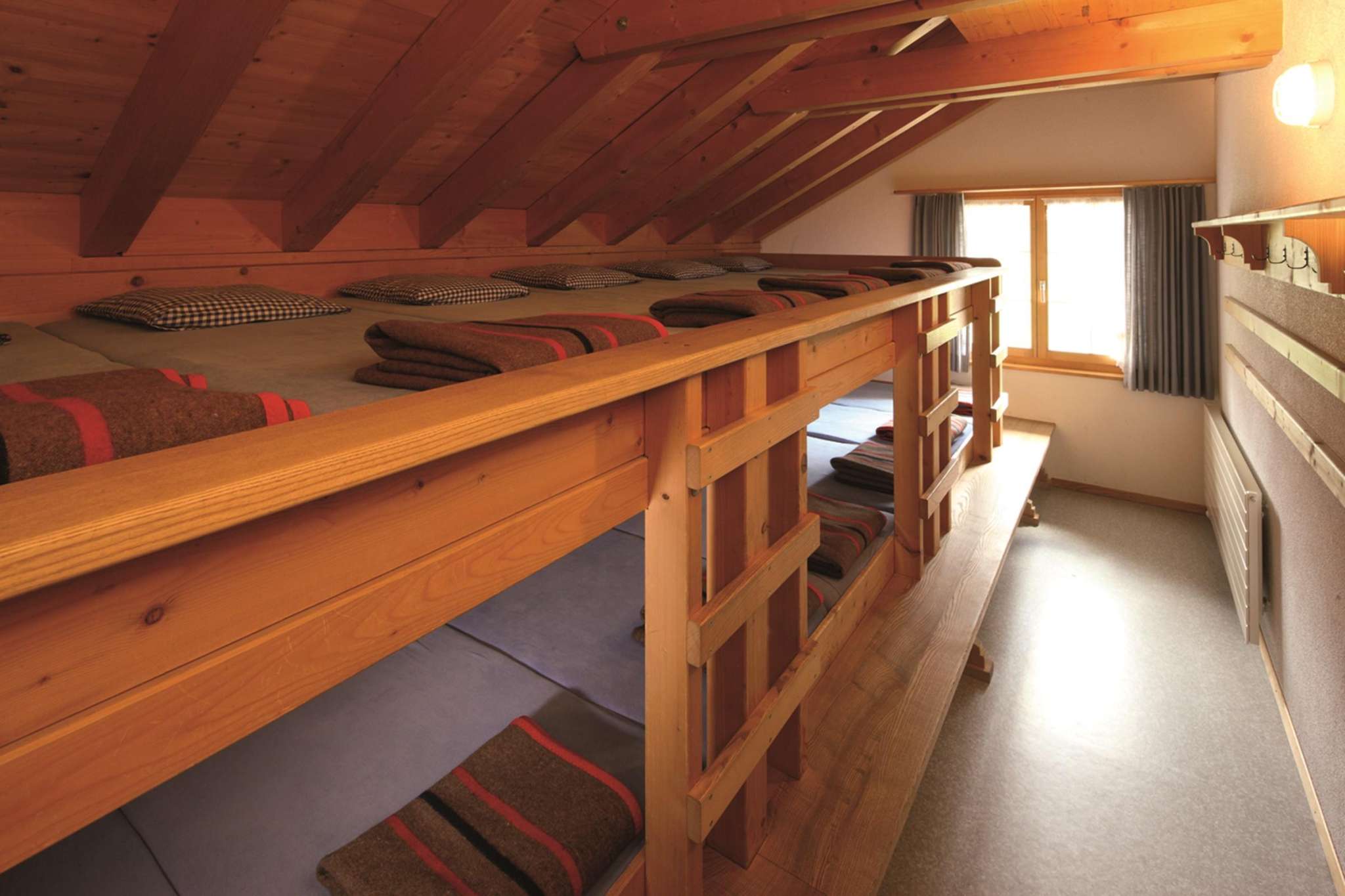 Massenlager mit einem 9er-Schlafsaal und zwei 13er-Schlafsäle, verfügbar vom 1. Oktober bis 30. April geeignet für Gruppen. Küche und Aufenthaltsraum vorhanden, Halbpension im Restaurant möglich.