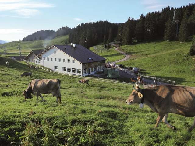 Im Sommer Landwirtschaft und Gastrobetrieb mit verschiedenen Milchprodukten. Grosser Kinderspielplatz.