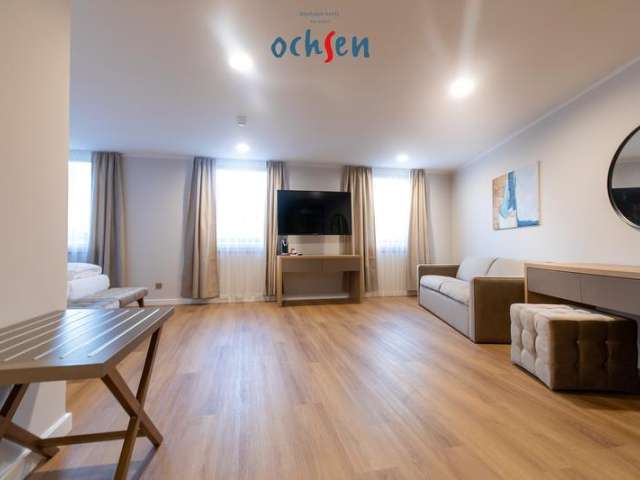 Die individuell eingerichteten Zimmer im Boutique Hotel Ochsen bieten Holzböden und stilvolle Kunstwerke an den Wänden. Die Zimmer verfügen über einen TV, einen Haartrockner sowie einen Sitzbereich mit einem Sofa.