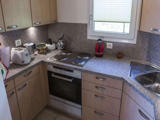 Beide Ferienwohnungen sind komfortabel und zeitgemäss eingerichtet und verfügen über ein gemütliches, offenes Wohnzimmer mit zwei Sofas, Lesesessel und Flachbild-TV sowie einen Essbereich mit Esstisch, Eckbank und Stühlen. Eine moderne Küche mit Kochherd, Backofen, Kühlschrank, Geschirrspüler, Kaffee-/Wasserkocher, Toaster. Badezimmer mit Dusche/WC.