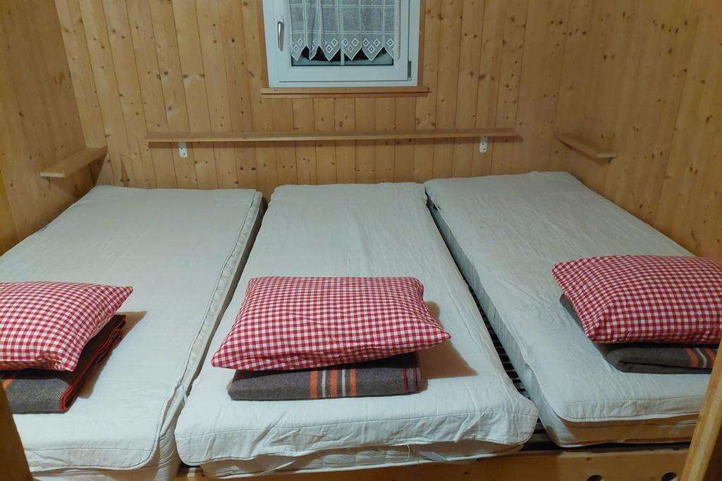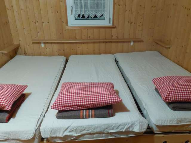 Die Chrüterhütte auf 1400 m bietet eine einfache Unterkunft mitten auf der Skipiste im Winter und auf der Alpweide im Sommer. Sie ist renoviert und zu einem günstigen Preis mietbar.