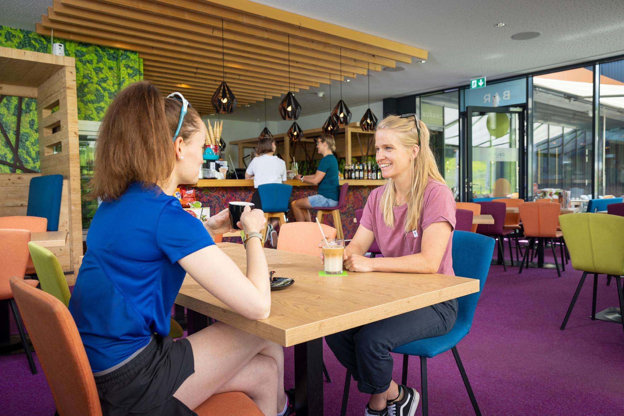 Die bediente COLORS Bar verfügt über 56 Innenplätze. Neben einem kunterbunten Getränkeangebot, werden am Morgen Frühstück und am Nachmittag trendige Snacks angeboten.