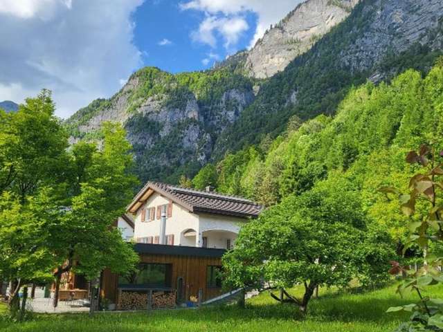 Das 3.5-Zimmer-Bungalow liegt in Berschis mitten im Dorf, mit schöner Sicht auf die Berge.