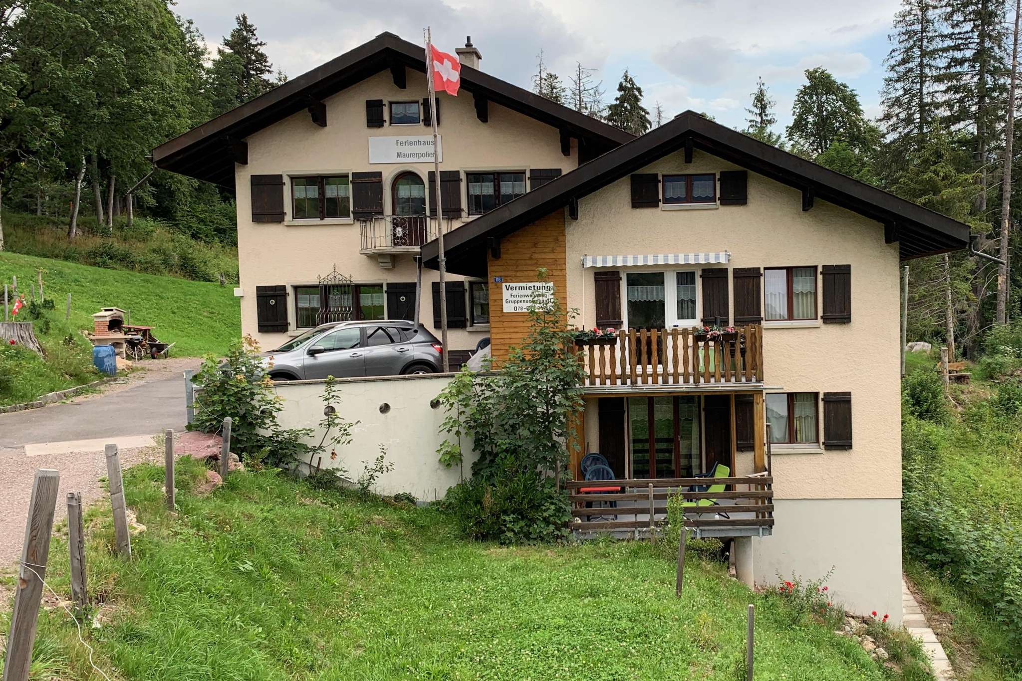 Die Ferienwohnungen und das Clubhaus verfügen über separate Eingänge und gratis Parkplätze. Sie können nach Bedarf einzeln oder auch zusammen gemietet werden. Auch eine Saison- oder Jahresmiete der Wohnungen ist möglich.
