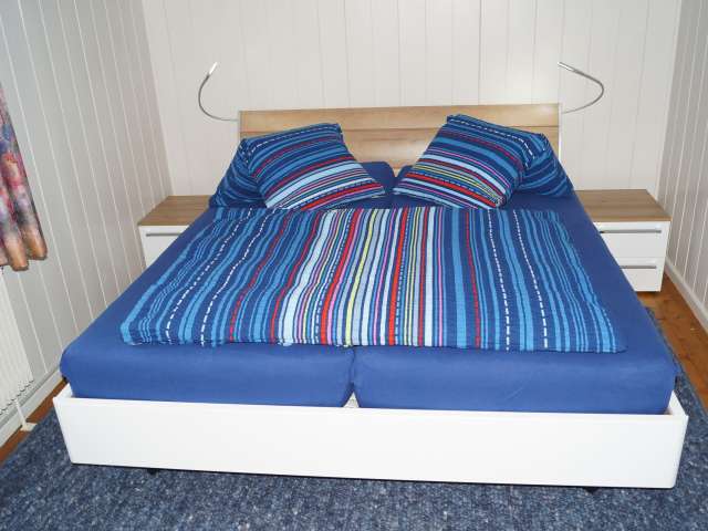 Das Ferienhaus ist komfortabel eingerichtet und sehr heimelig. Die Schlafräume im oberen Stock verfügen über einen schönen Holzboden.