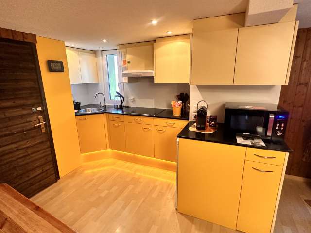 Die Küche ist sehr modern und mit Eckbank und Esstisch, Nespresso Kaffeemschine, Mikrowelle/Backofen, Kühlschrank, ausgestattet.