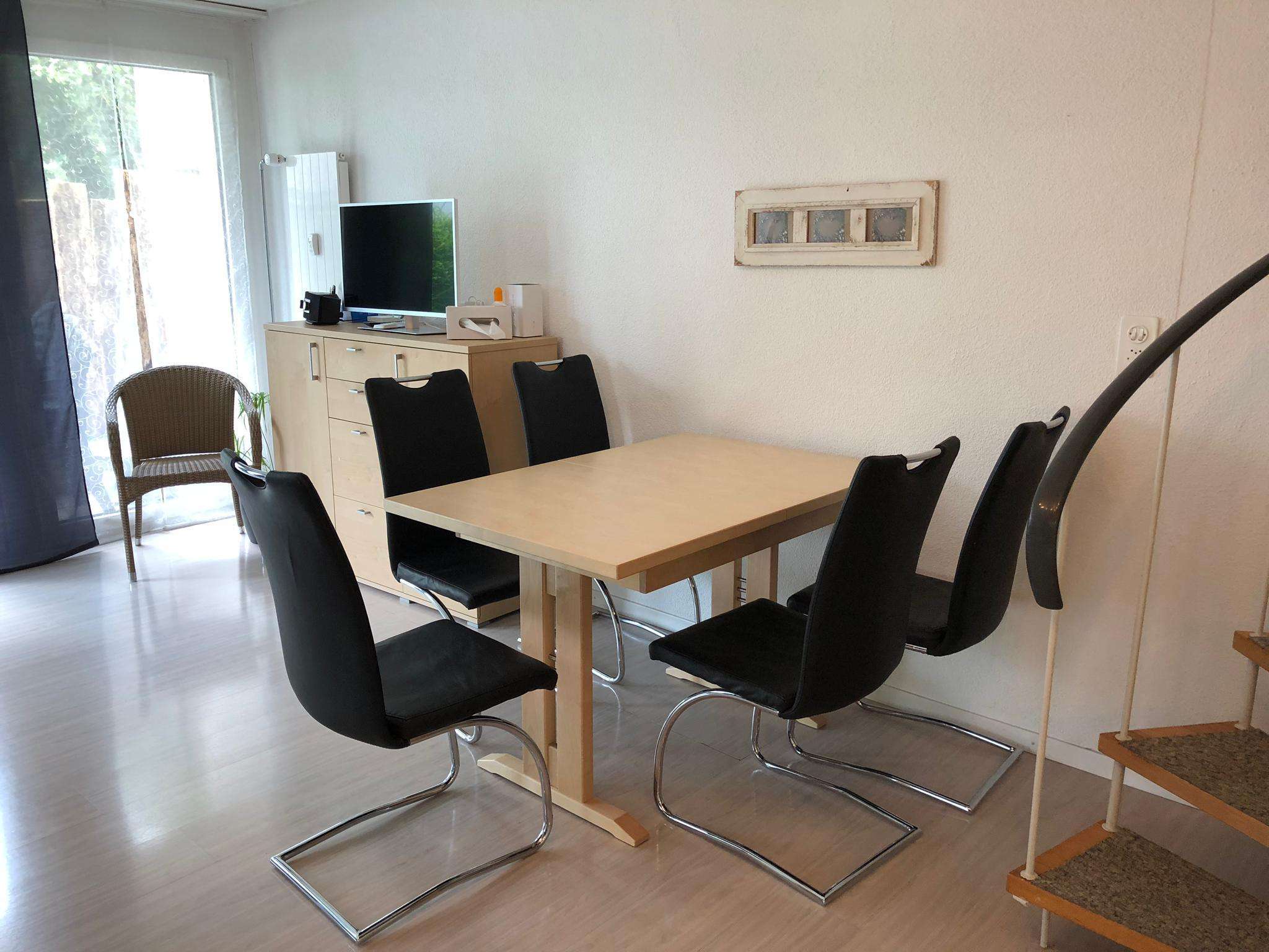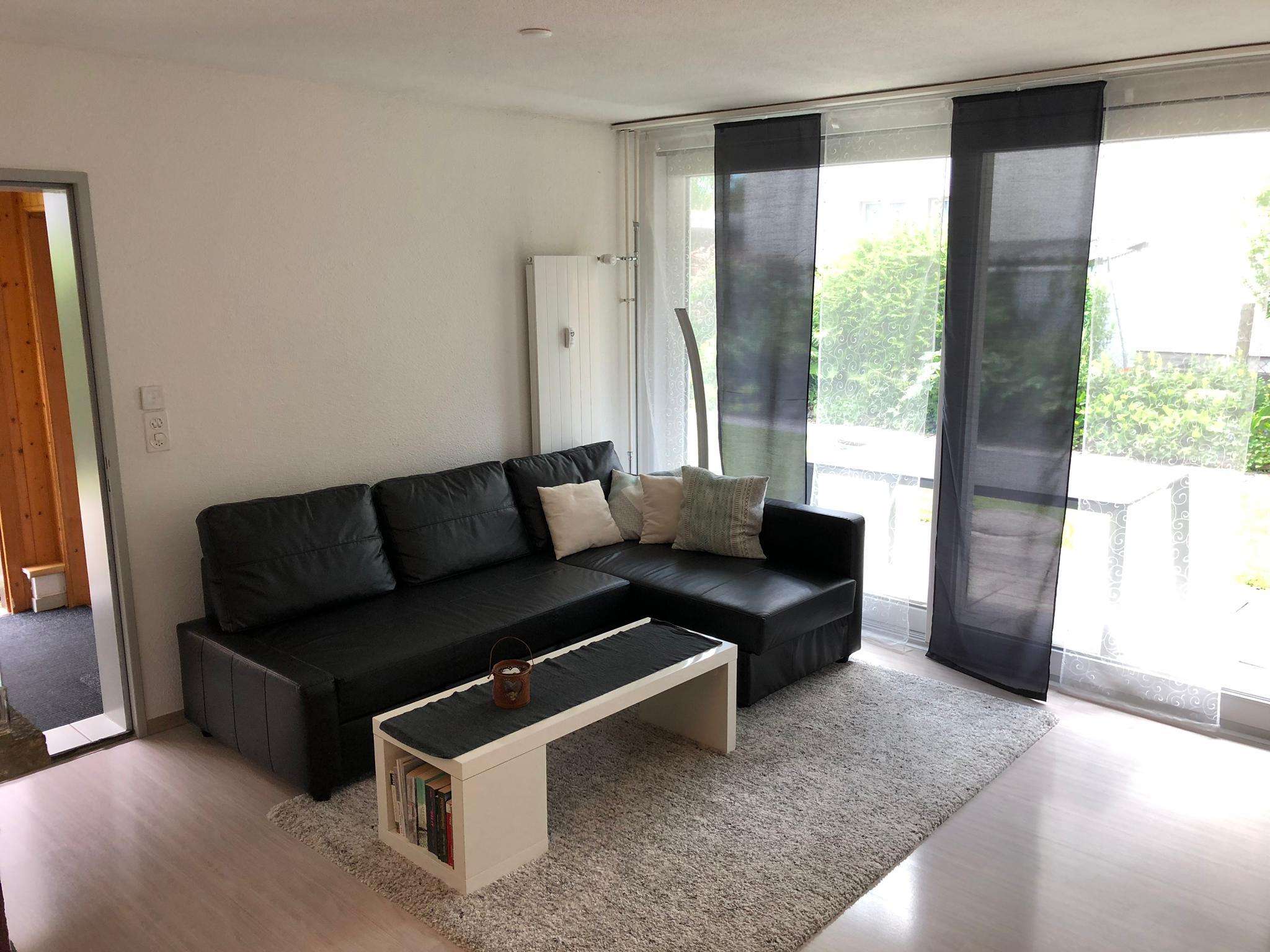 Das Apartment verfügt über 1 grosses Schlafzimmer mit Trennwand, 1 Bad mit WC, 1 WC, Bettwäsche, Handtücher, 1 Flachbild-TV, Wlan,Cheminée, eine voll ausgestattete Küche,Balkon und einen grossen Sitzplatz.