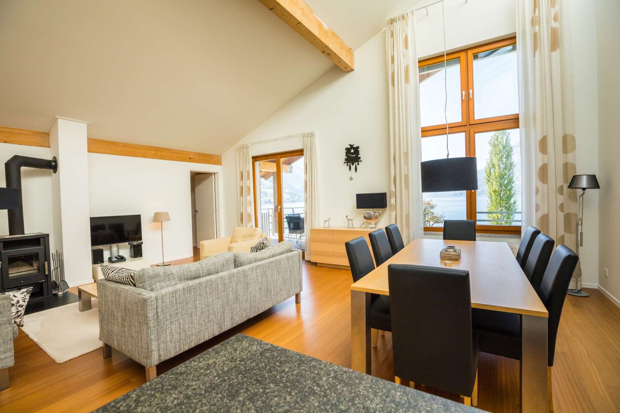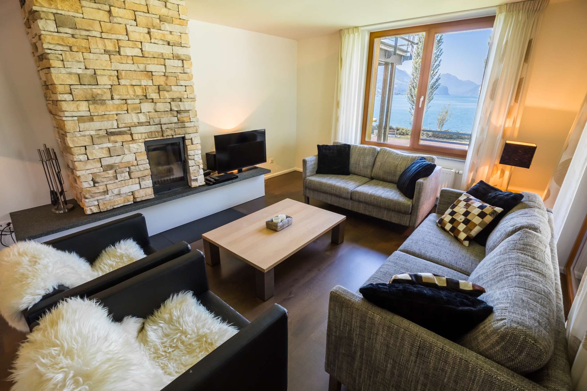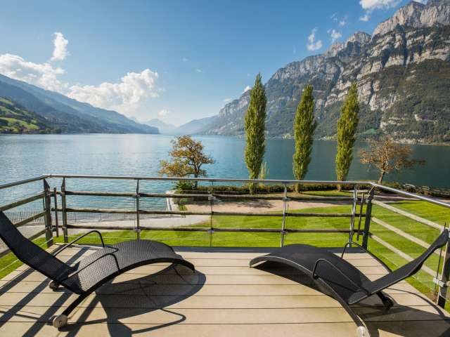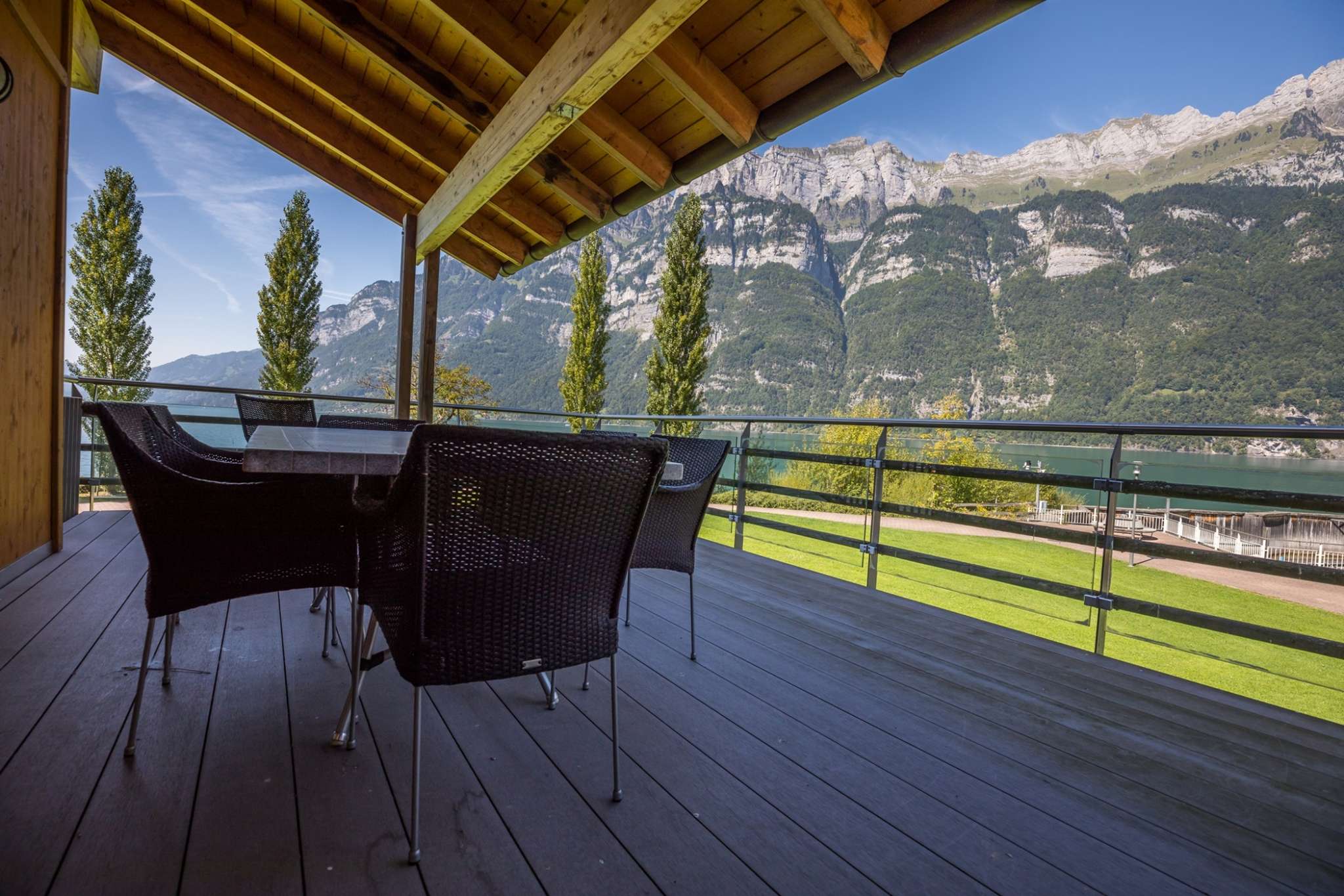 Die Ferienwohnungen Nr. 129 & 130 vom Haus A3 im Walensee Resort in Unterterzen haben eine wunderschöne Aussicht auf den Walensee und die umliegenden Churfirsten. Die Ferienwohnungen sind ein idealer Ausgangspunkt für Wanderausflüge sowie See- und weitere Outdooraktivitäten. Die ruhig gelegenen Wohnungen sind nur wenige Meter vom Bahnhof, den Bergbahnen sowie den nächsten Einkaufsmöglichkeiten entfernt.