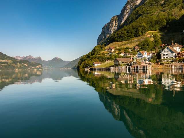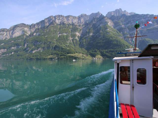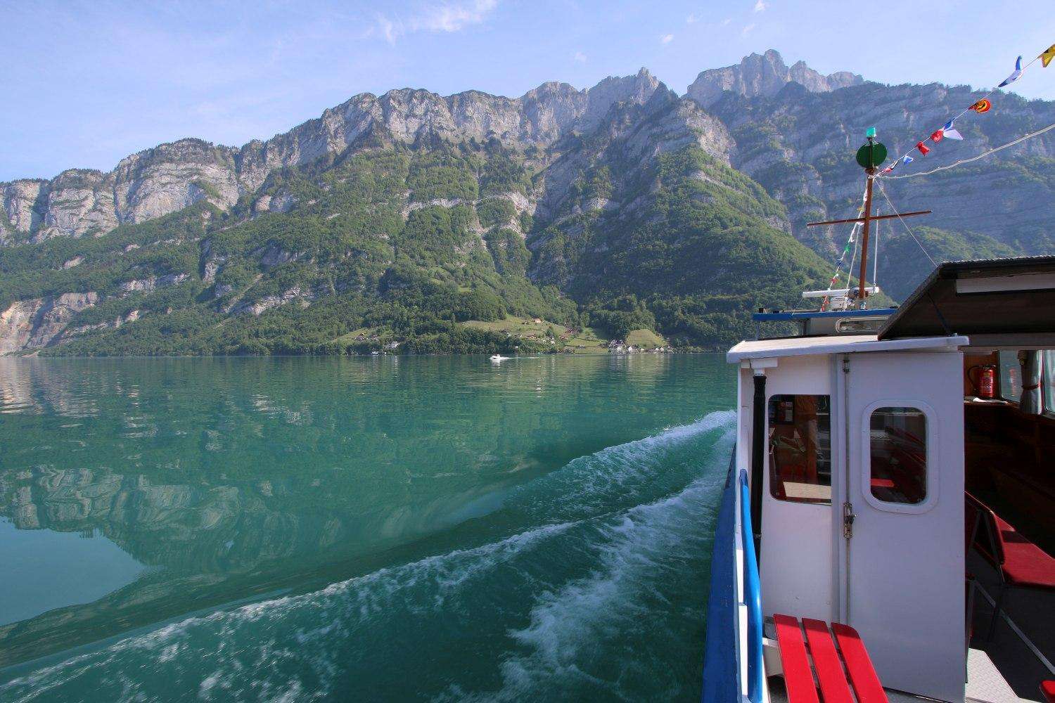 Mit dem Schiff gelangst du zu den malerischen Dörfchen am Walensee, wo Vorspeise, Hauptgang und Dessert auf dich warten.