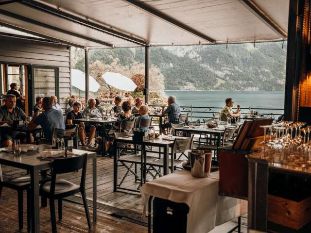 So hast du bestimmt noch nie einen Dreigänger genossen. Die Kulinariktour am Walensee verwandelt Vorspeise, Hauptgang und Dessert in ein echtes Erlebnis. Du überquerst mit dem Schiff den Walensee und erreichst nach einem kurzen Spaziergang das autofreie Weindörfchen Quinten. Inmitten von Palmen, Kiwis und Feigen geniesst du deine Vorspeise. Zurück auf dem Schiff geht es wieder auf die andere Seeseite. In Murg wartet ein köstlicher Hauptgang und Dessert auf dich. Ein Highlight ist der berühmte Kastanienwald in Murg, der sich hervorragend als Verdauungsspaziergang eignet.