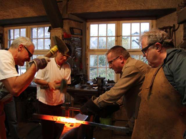 Lodernde Feuer, klingende Hämmer und Wasserkraft in der im Jahre 1777 erbauten Hammerschmiede in Mühlehorn, die auch Schauplatz und Drehort des 2015 lancierten Schellen-Ursli Films war.