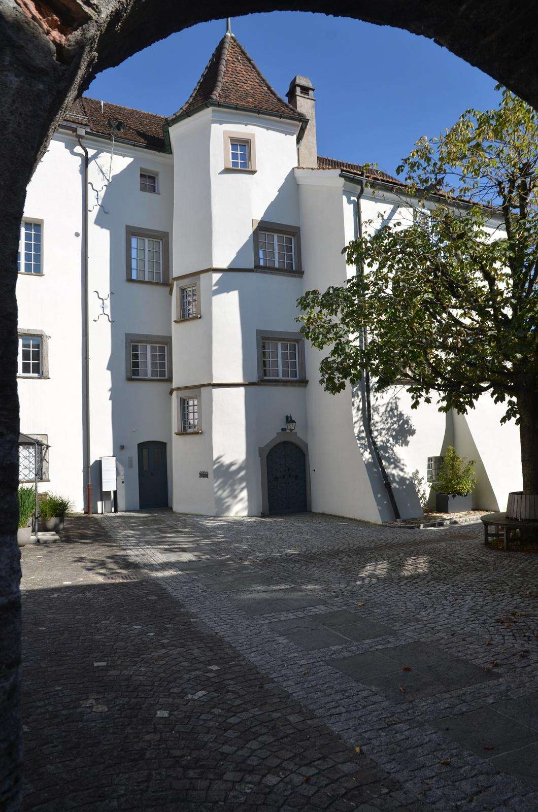 Ehem. Churwaldner Klosterhof, ab 17.Jh. stattl. Doppelhaus mit zwei Treppentürmen in mauerumschlossenen Hof („Raumfiliale“ des „Städtliplatzes“, jedoch privat). Einziges Herrschaftshaus innerhalb ehem. Stadtmauer. Unteres Haus erbaut im 16. Jh. für Stadtvogt Dürig Enderlin v. Montzwick, oberes im 17.Jh. Régencestuckaturen 1720-30. Steckborner Turmofen 1749 von D. und H. Meyer.