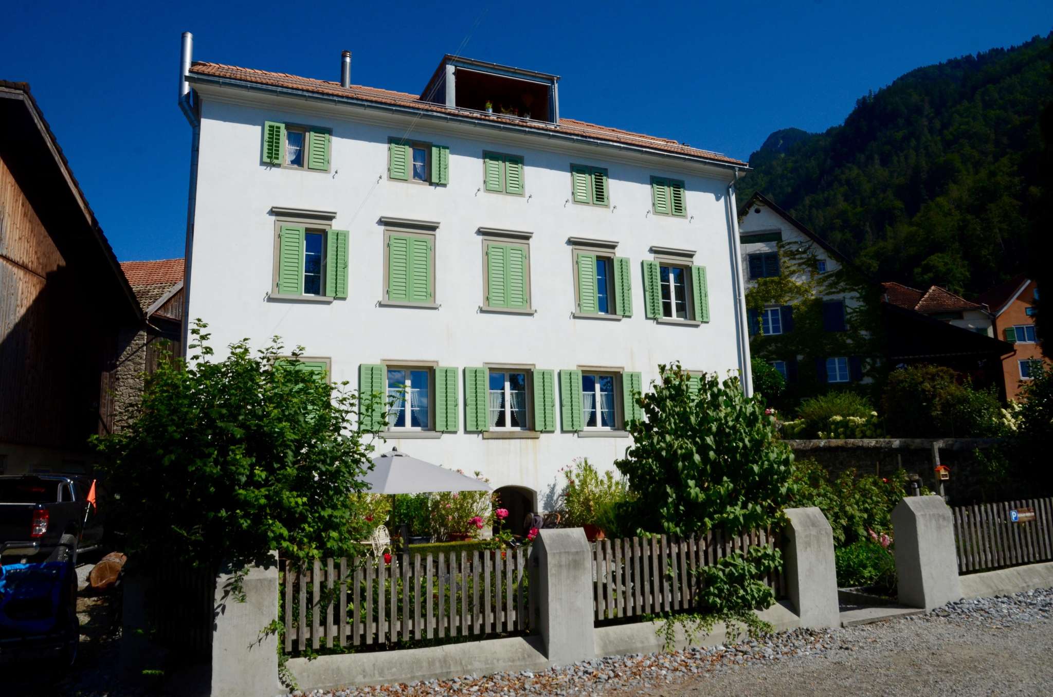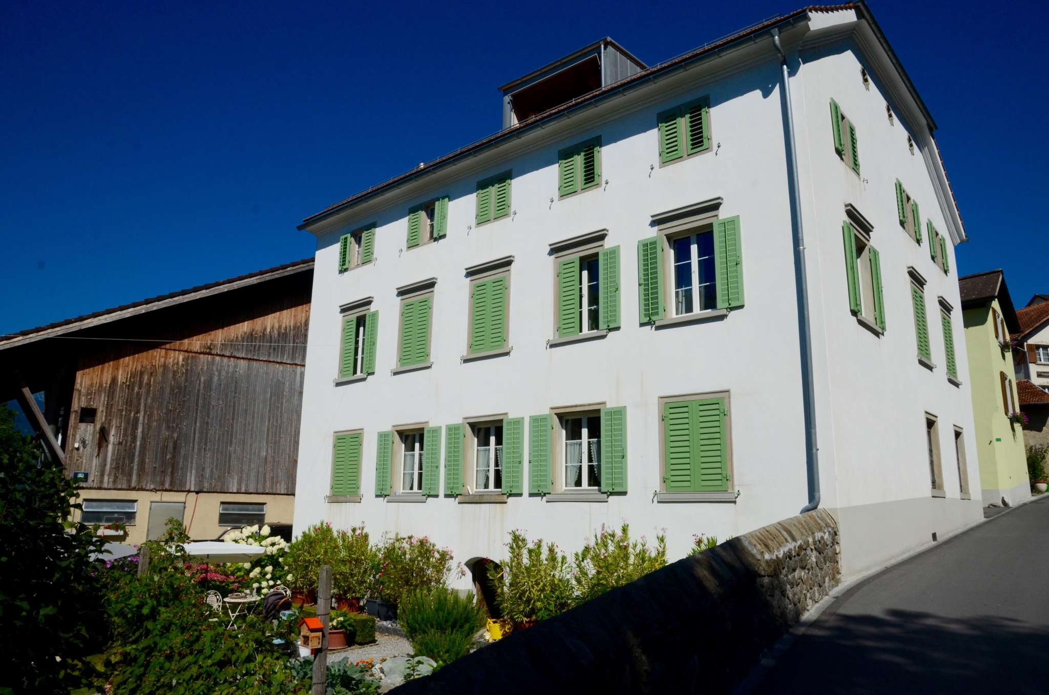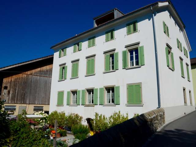 Das Haus Weinzürle in Jenins bildet mit seinem Krüppelwalmdach und dem gegenüberliegenden Wohnhaus eine Torsituation zum Dorfkern. Der Sandsteineingang und der geometrisch angelegte Bauerngarten stammen aus dem Jahr 1860.