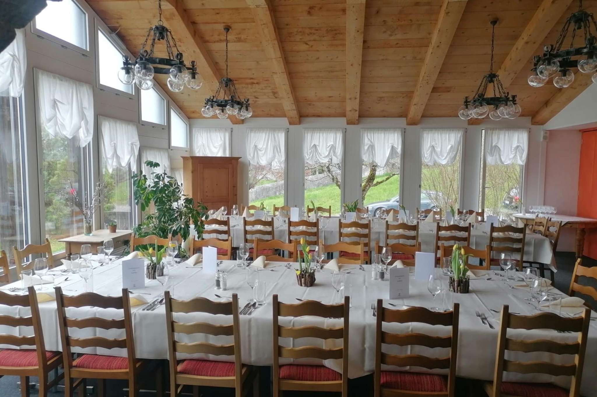Für Feiern, Bankette oder Seminare steht Ihnen ein Eventsaal für bis zu 100 Personen oder ein kleineres Seminarraum mit moderner Technik zur Verfügung.
