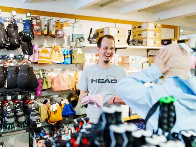Neben einer attraktiven Bekleidungsabteilung bietet die Filiale Tannenboden ein breites Verleihangebot an. Von aktueller Ski- und Snowboardausrüstung bis hin zu passendem Zubehör – hier finden Wintersportler:innen alles, was sie für einen perfekten Tag im Schnee benötigen. Mit dem Standort direkt bei der Talstation der 8er-Gondelbahn BergJet, ist die Filiale Tannenboden der ideale Ausgangspunkt für Ihre Wintersporterlebnisse am Flumserberg.