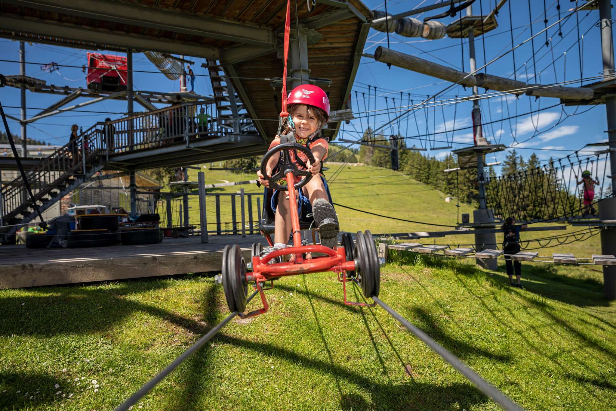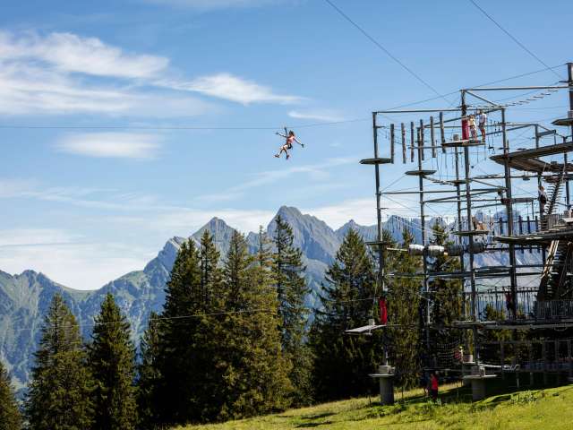 Lass dich ab den oberen Etagen vom Kletterturm in die Weite tragen und schwebe mit dem flyingCLiiMBER auf 6 verschiedenen Linien, auf über 15 Meter Höhe und 700 m Länge. Spüre den Wind und geniesse die herrliche Aussicht. Dieses Erlebnis ist nur für Personen die grösser als 1.40 m sind erlaubt.