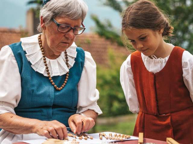 Nur noch wenige Menschen beherrschen diese uralte Handwerskunst des Klöppelns. Beim Zuschauen merkt man erst, wie konzentriert diese Frauen sein müssen, um diese feinen Fäden so zu klöppeln, dass ein gewisses Muster dabei entstehen kann. Unzählige Arbeitsstunden stecken in einer kleinen Spitzendecke. Lassen Sie sich selbst beeindrucken.