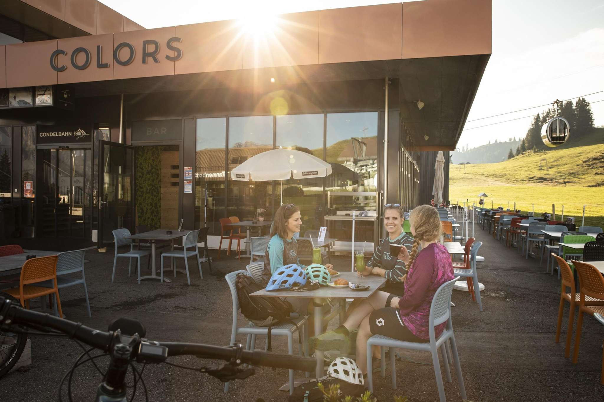 Was macht eine grossartige Biketour perfekt? Genau. Das Essen! Wer nach einer ausgiebigen Tour Lust auf etwas Herzhaftes hat, ist am Flumserberg genau richtig. Der Berg oberhalb des Walensees bietet alles, was das Biker-Herz begehrt. Ob mit oder ohne Motor: Wunderschöne Wege führen über Hügel und durch Wälder. Die Aussicht auf die Churfirsten Bergkette und das Spitzmeilengebiet ist einmalig. Gut warten während der Tour kulinarische Stopps in drei Restaurants auf dich. Zu Beginn stärkst du dich im COLORS - Restaurant und Bar, der Hauptgang wird auf 2'020 m ü. M. im Panoramarestaurant Maschgenkamm serviert und zum Abschluss geniesst du das wohlverdiente Dessert im Bergrestaurant Prodalp. So hast du genug Zeit, die Berglandschaft zu geniessen und regionale Spezialitäten zu kosten.