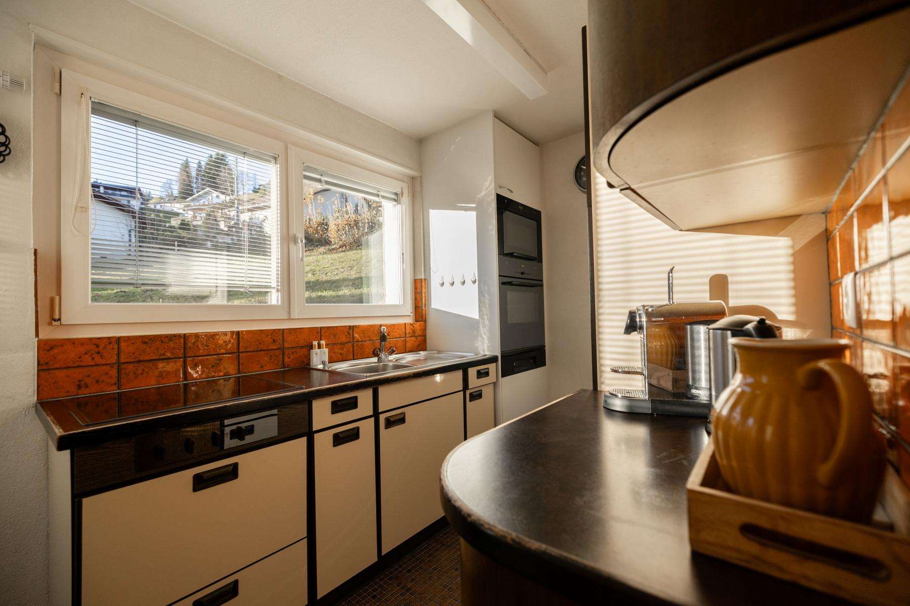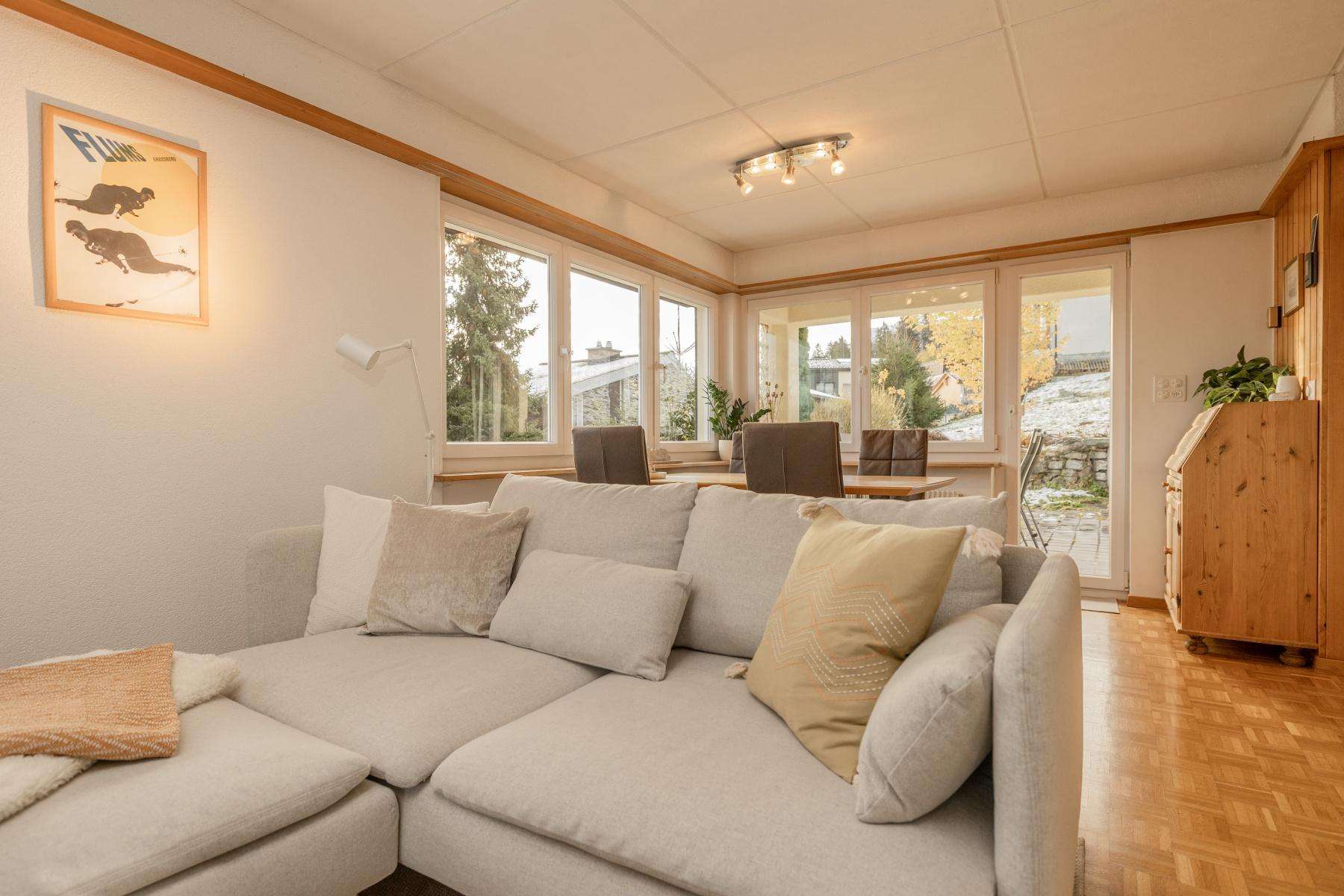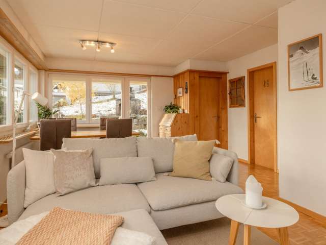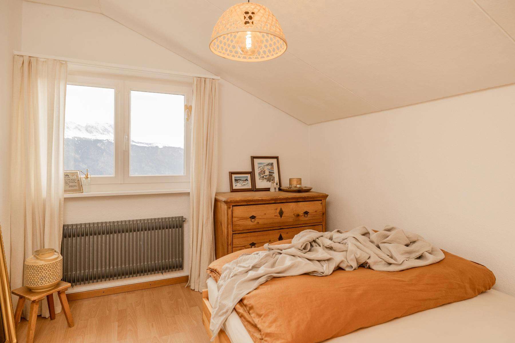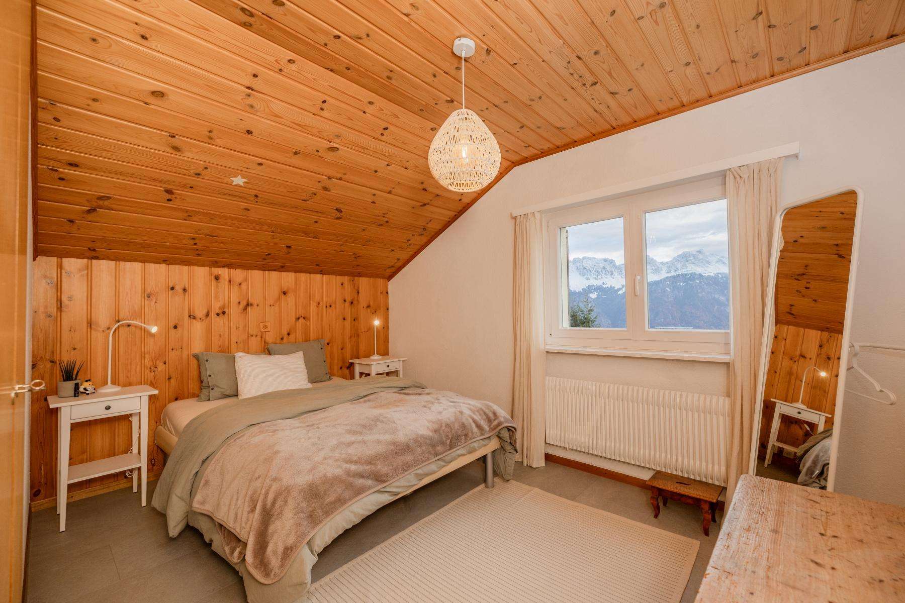 Ruhiges 5-Zimmer-Haus für bis zu 6 Personen mit vier Schlafzimmern, zwei Bädern und Wohnküche, nahe Prodalp-Gondelbahn, ideal für entspannte Bergferien.