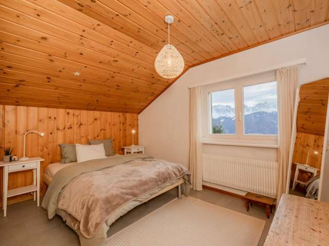 Dieses liebevoll eingerichtete 5-Zimmer-Haus ist ideal für entspannte Ferientage mit Familie oder Freunden. Vier Schlafzimmer, zwei Badezimmer sowie ein offener Wohn- und Essbereich mit voll ausgestatteter Küche bieten Platz für bis zu 6 Personen und schaffen ein wohnliches Zuhause-Gefühl. Der gemütliche Wohnbereich lädt nach aktiven Tagen zum gemeinsamen Kochen, Essen und Entspannen ein. Ruhig gelegen und dennoch zentral: Das Zentrum von Tannheim sowie die Prodalp-Express-Gondelbahn sind in 7–10 Gehminuten erreichbar. Ankommen, durchatmen und echte Bergferien geniessen.