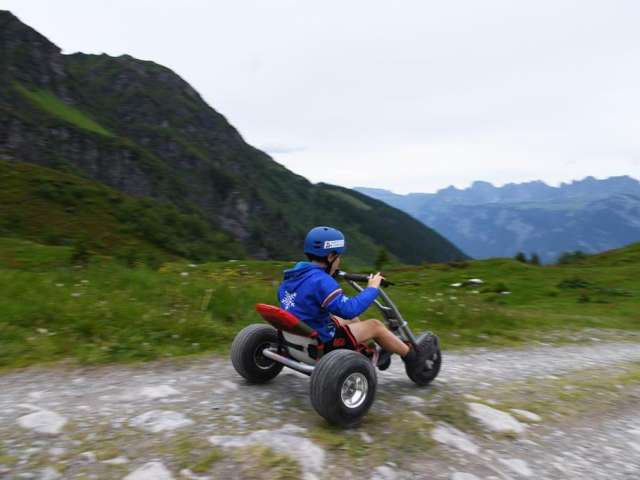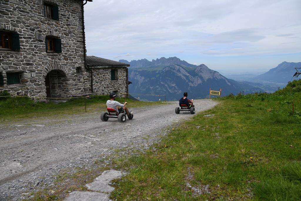 Die Mountaincarts am Pizol bieten ein aufregendes Fahrerlebnis auf einer 2200 m langen Strecke zwischen Gaffia und Furt. Die Carts sind stabil und werden durch Schwerkraft angetrieben, was ein sicheres und individuelles Tempo ermöglicht.