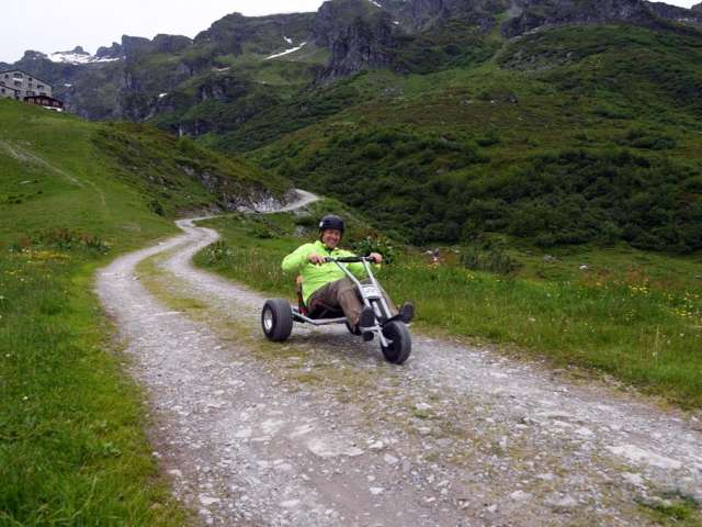 Auf der rund 2200m langen Strecke zwischen den Stationen Gaffia und Furt kann die aufregende und kurvenreiche Naturstrasse befahren werden. Dank des tiefen Schwerpunkts und einem breiten Radstand, verfügen die Mountaincarts über eine hohe Stabilität. Ohne Motor und aus reiner Schwerkraft angetrieben, kann selbst bestimmt werden in welchem Tempo die Fahrt aufgenommen werden soll. Die Sicherheit steht jedoch auch bei uns stets an erster Stelle. Bitte beachten Sie hierzu stets unsere Verhaltensregeln sowie die Allgemeinen Geschäftsbedingungen.