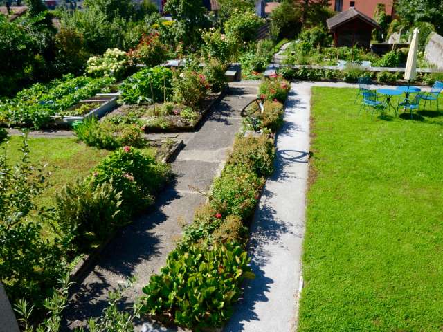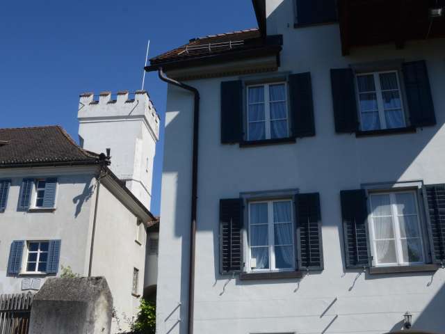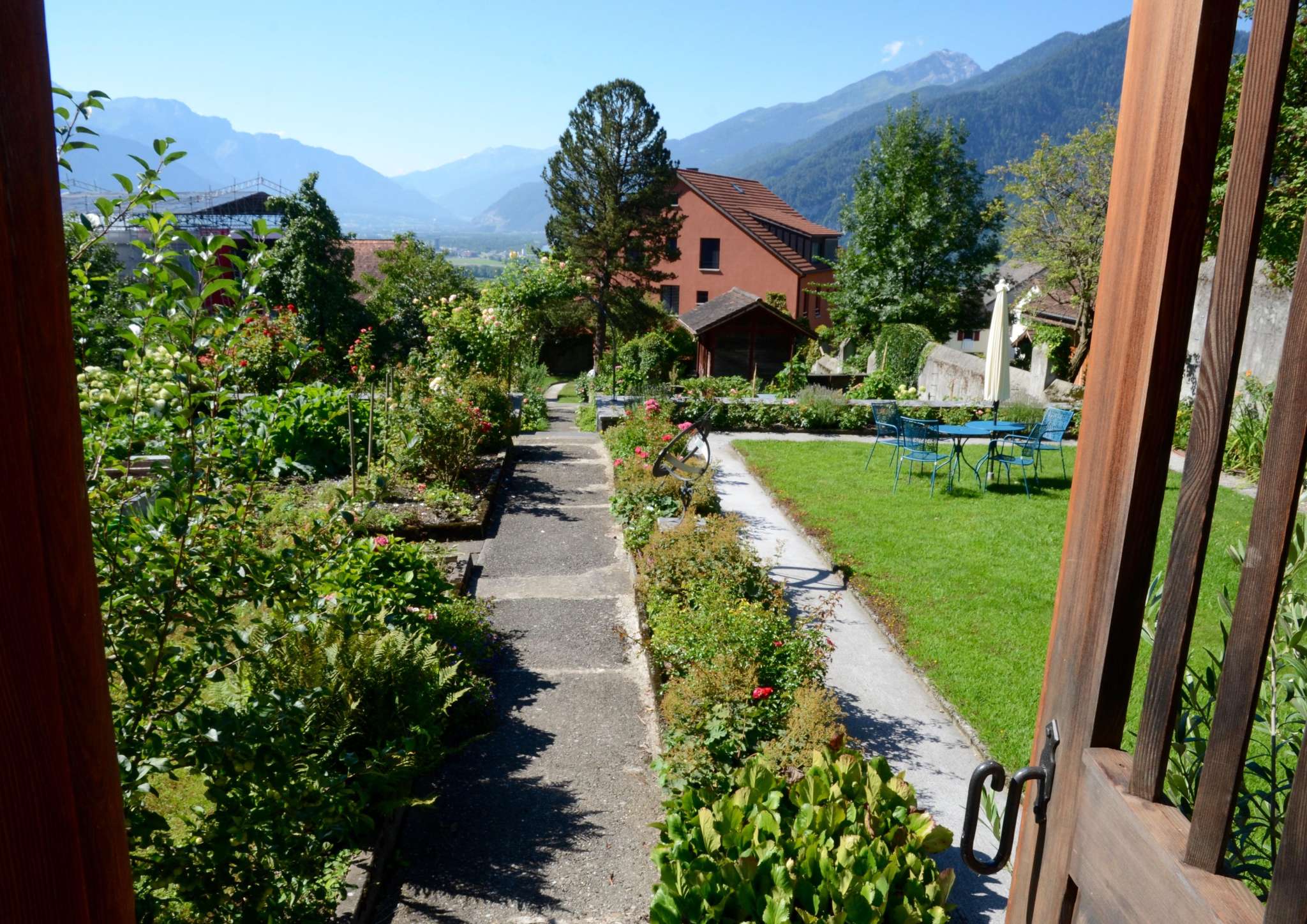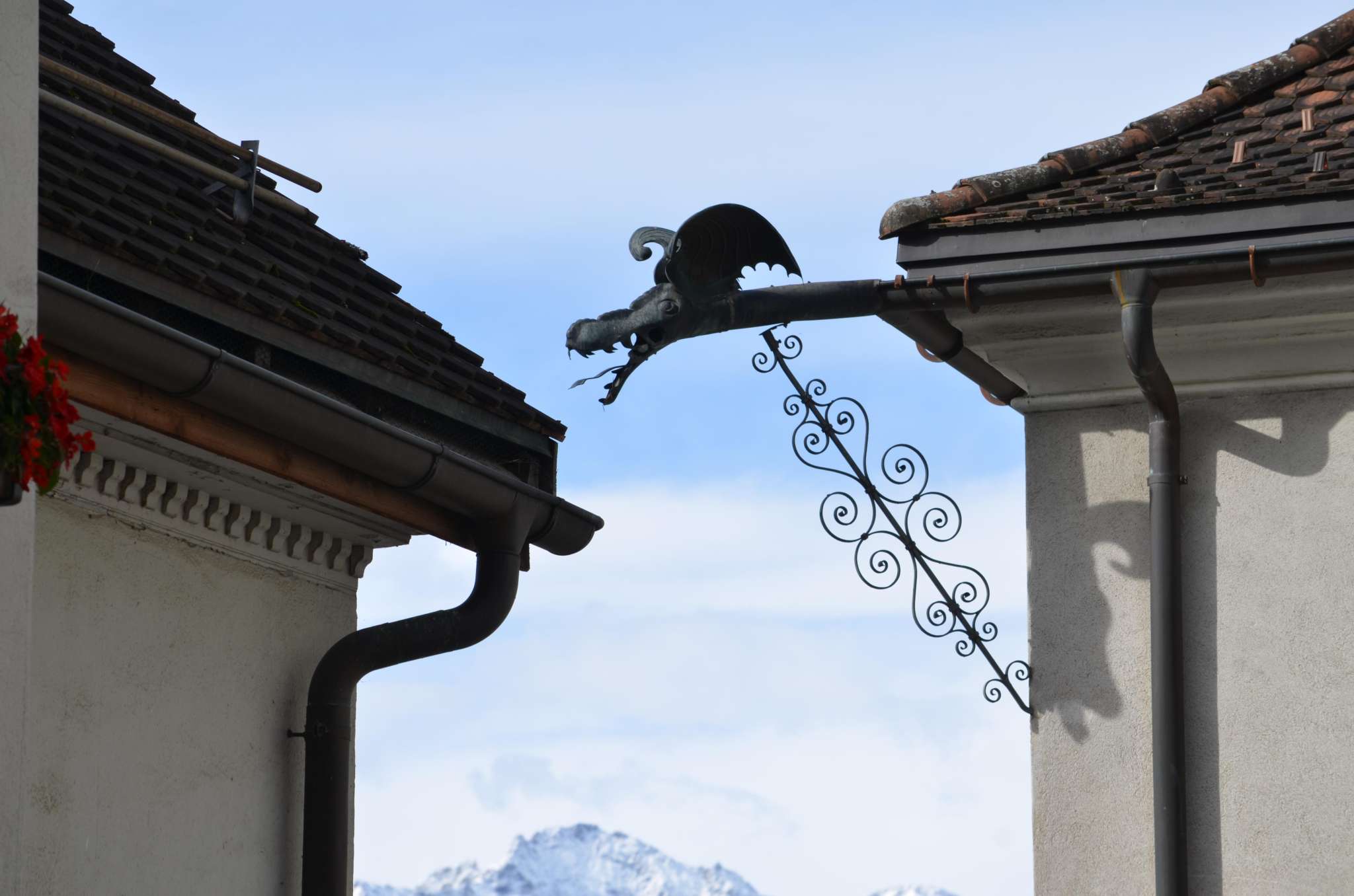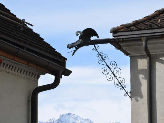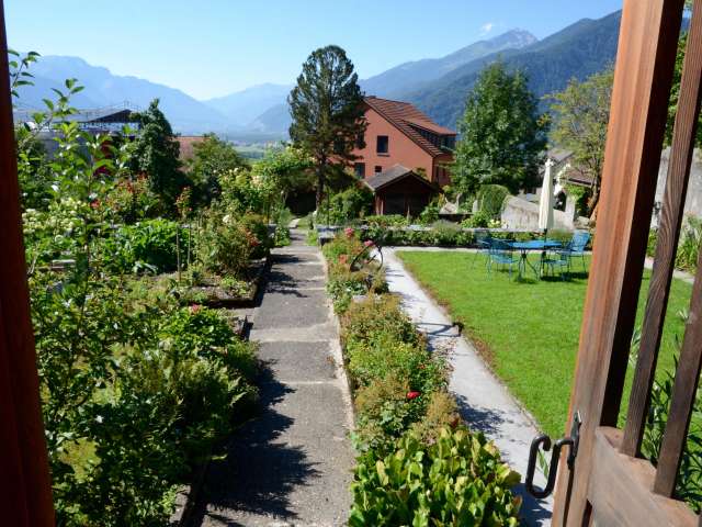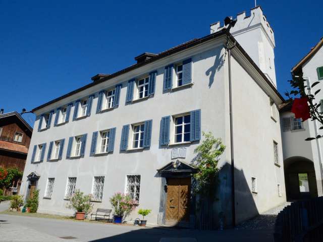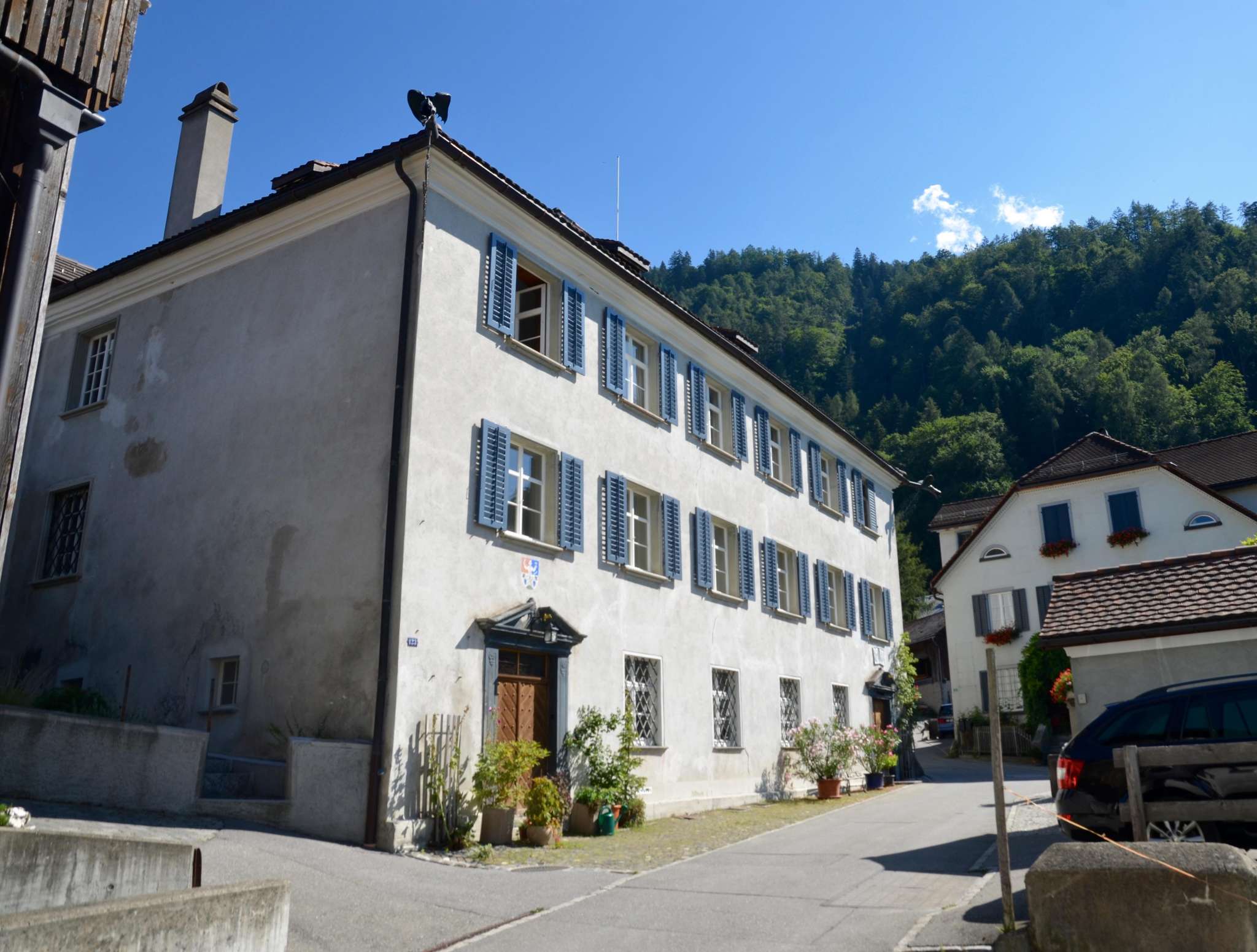 Das herrschaftliche Patrizierhaus mitsamt Zinnen bewehrtem Turm bildet einen prägnanten Abschluss des oberen Dorfrandes. Die Fenster in der symmetrischen, dreigeschossigen Schaufront unter dem Walmdach lassen viel Licht in die teils mit barockem Arventäfer und historischen Öfen bestückten Zimmer. Bemerkenswert ist auch der südlich vorgelagerte Bürgerhausgarten.
