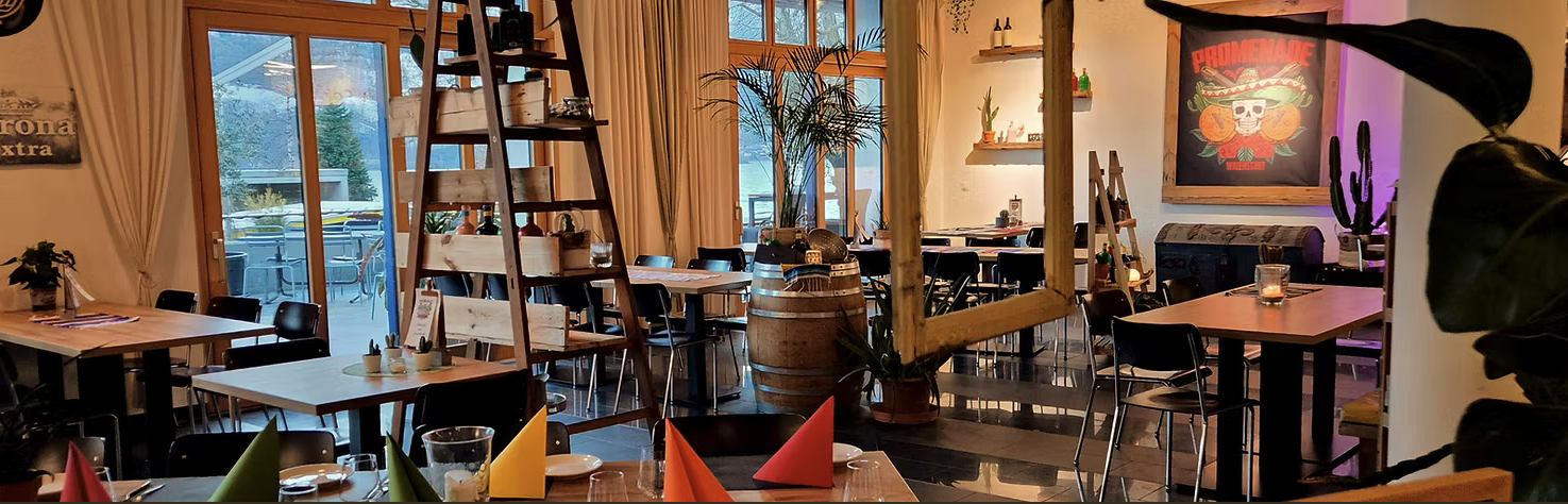 Die Promenade Walenstadt bietet eine kulinarische Vielfalt mit mexikanischer, texanischer und Asado Küche direkt am Walensee. Das Restaurant verbindet historische Wurzeln mit modernem Flair und verwendet frische, lokale Zutaten.
