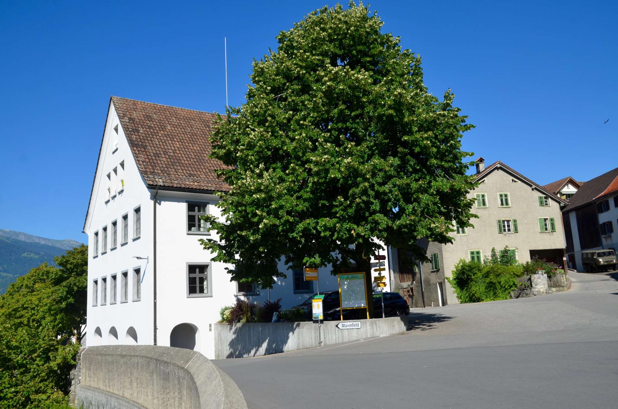 Das Rathaus in Jenins liegt am westlichen Dorfeingang, nahe der Kirche. Es bildet mit der Kirche und umliegenden Häusern das politische, wirtschaftliche und religiöse Zentrum des Dorfes. Ursprünglich diente es als Schulhaus.