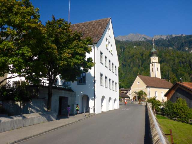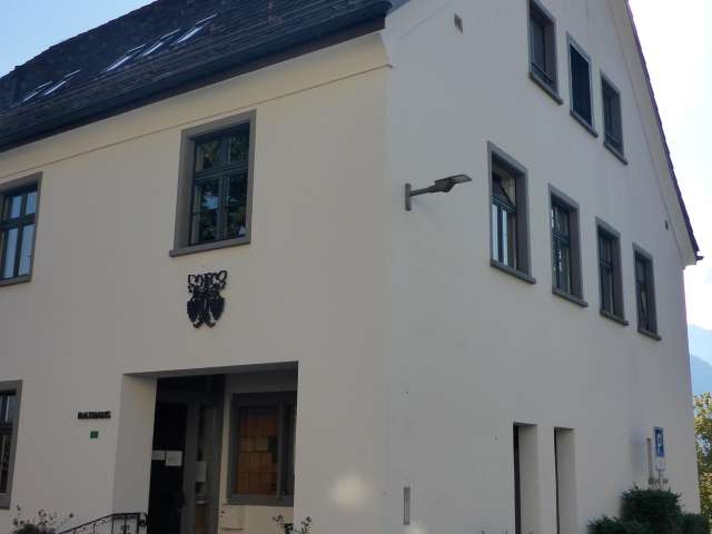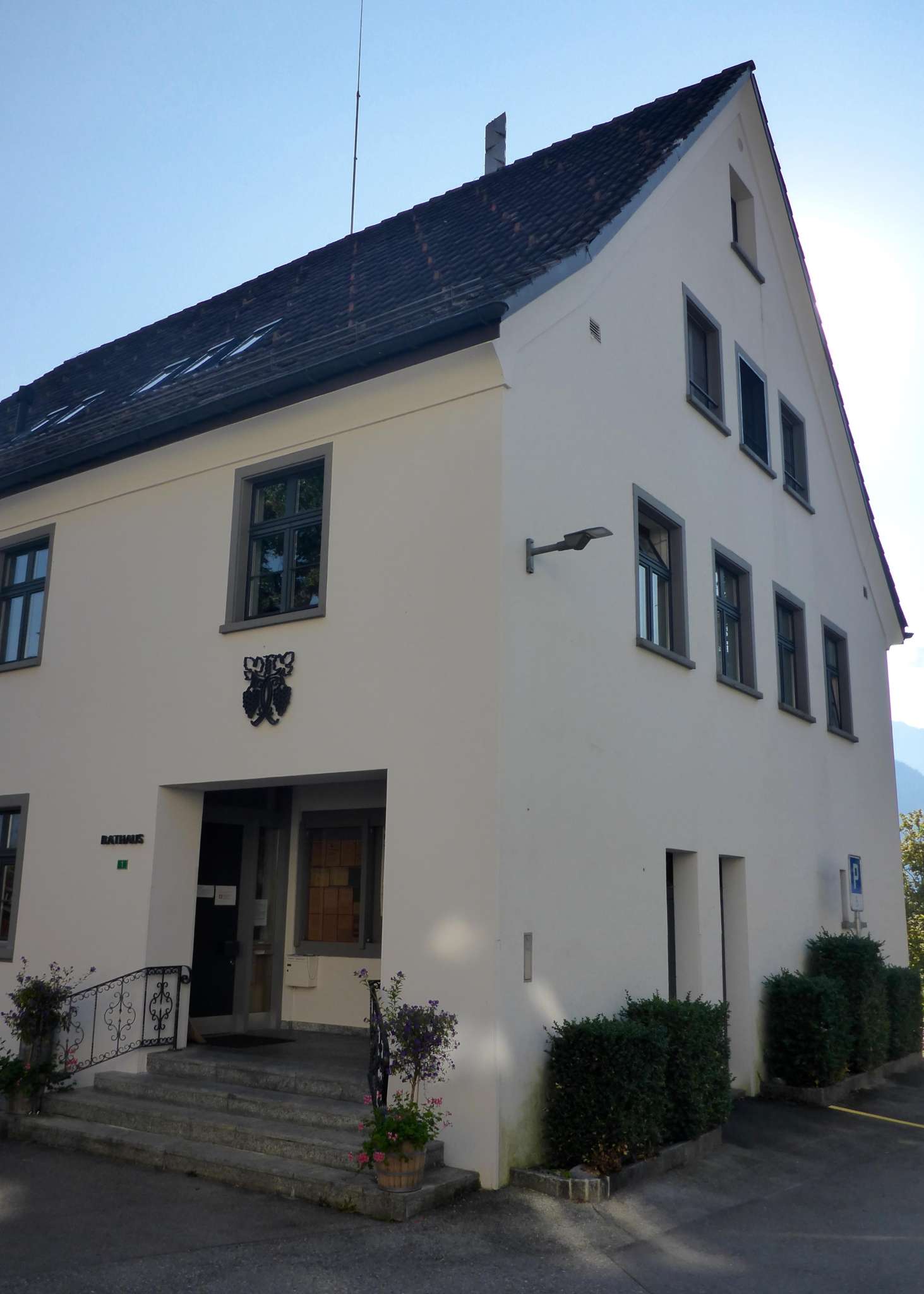 Das heutige Rathaus besitzt einen wesentlichen Situationswert am westlichen Dorfeingang, in unmittelbarer Nähe zur Kirche. Mit dieser und den obliegenden Häusern bildet es ein dörfliches, politisch - wirtschaftlich - religiöses Zentrum. Ehemals diente es als Schulhaus und erlangte damit eine erste sozialgeschichtliche Bedeutung. Der Schulhausneubau grenzt nordwestlich ans Rathaus.