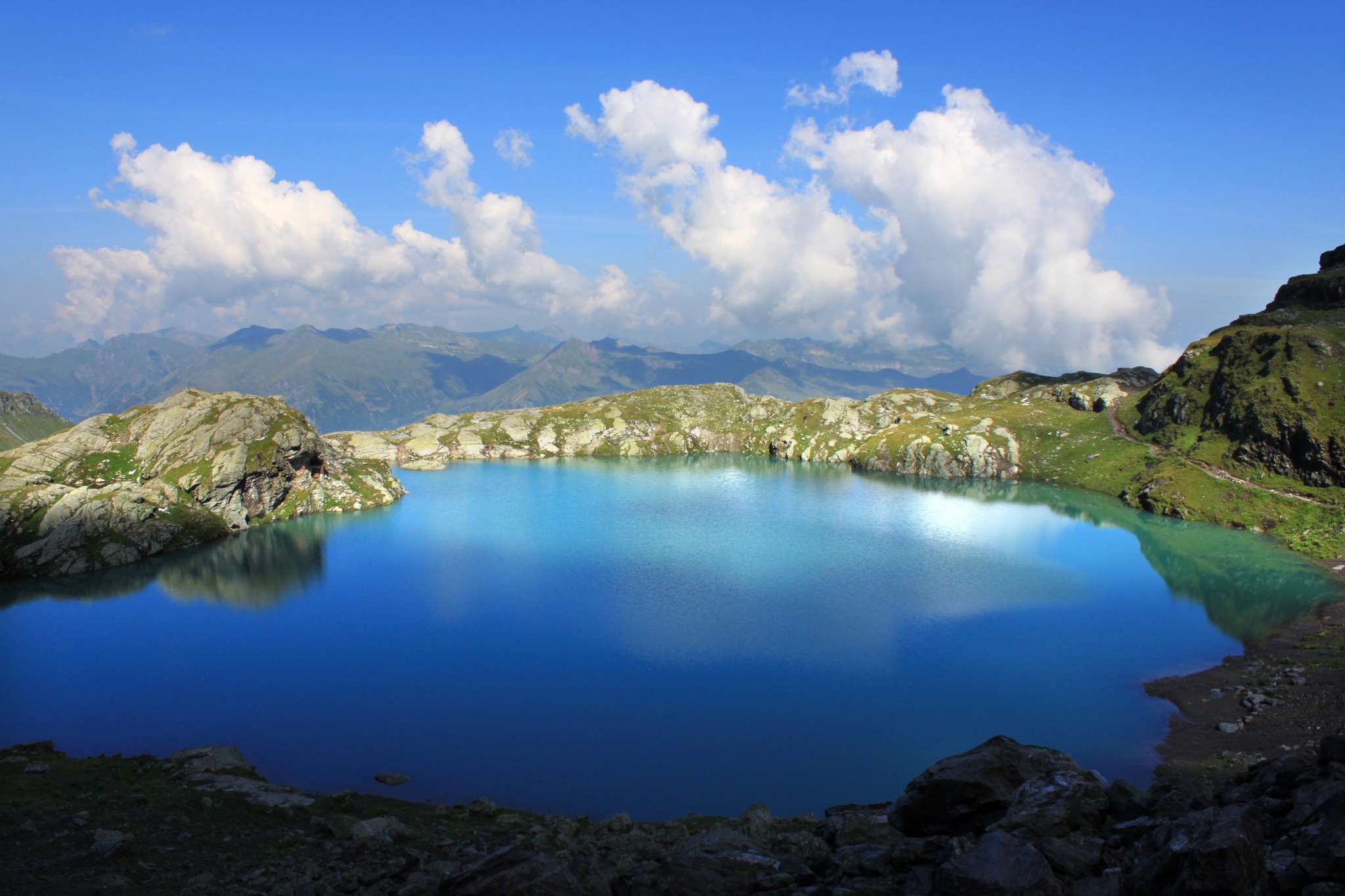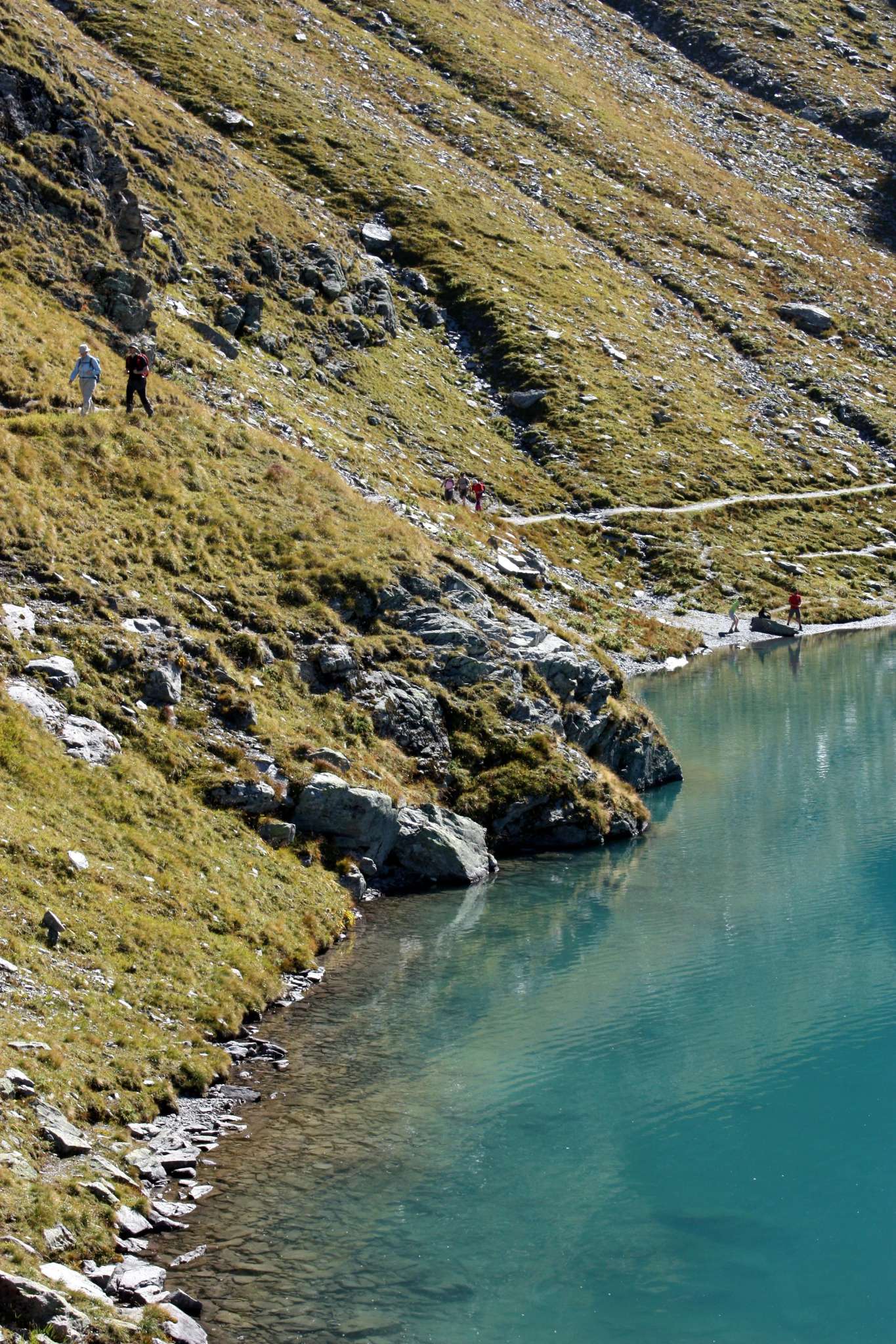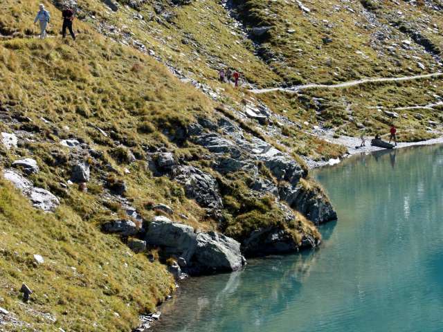 Ob Wildsee, Schottensee, Wangsersee, Schwarzsee oder Baschalvasee: Jeder der fünf Pizolseen ist ein Bijou für sich und so unterschiedlich, dass der Betrachter aus dem Staunen nicht mehr herauskommt. Als Wanderklassiker in der Schweiz gilt die 5-Seen-Wanderung, bei der man an allen Pizolseen verbeikommt. Die Wanderung beginnt bei der Pizolhütte am Wangsersee. Der Aufstieg zur Wildseelücke auf 2'493 m, von wo man eine schöne Aussicht bis zum Ortler und Piz Kesch hat, dauert rund eine Stunde. Unterhalb der Scharte auf 2'438 m liegt der Wildsee, mit seinem milchig-blauen Wasser und wirkt fast wie hineingemalt in die unwirtlich-karge Alpinlandschaft. Im Hintergrund entdeckt man Pizolgletscher, den Pizolgipfel und die Grauen Hörner. Nach einem kurzen Abstieg gelangt man zum grünlich schimmernden Schottensee auf 2'335 m, dessen klares Wasser ganz Hartgesottene an einem schönen Sommertag ab und an sogar zu einem Bade animiert. Weiter geht es zum Schwarzsee 2'368 m, der im Gegensatz zu den ersten beiden Seen eher dunkel und bedrohlich wirkt. Kein Wunder, soll hier der Legende nach ein Stier im Wasser hause. An zahlreichen alten Steinmannli vorbei gelangt man schliesslich zum Baschalvasee auf 2'174 m, dessen Farbe mit dem Grün der umliegenden Matten konkurriert.