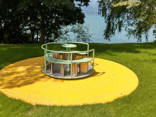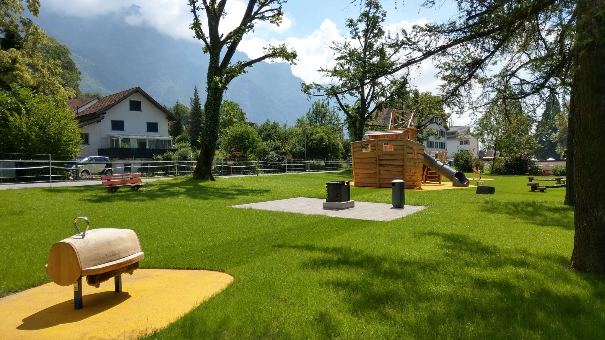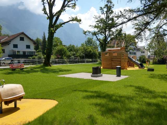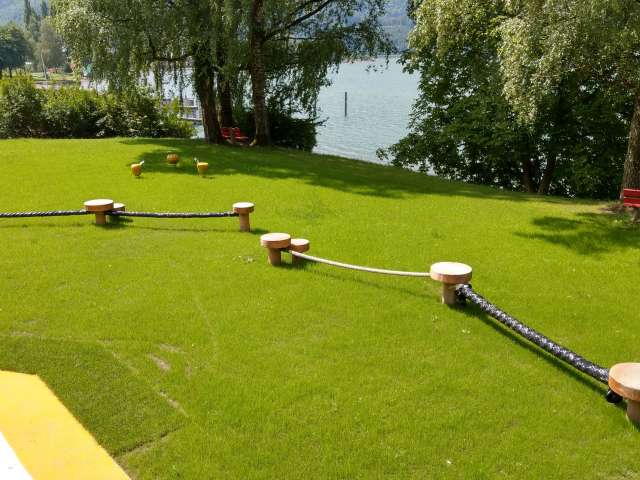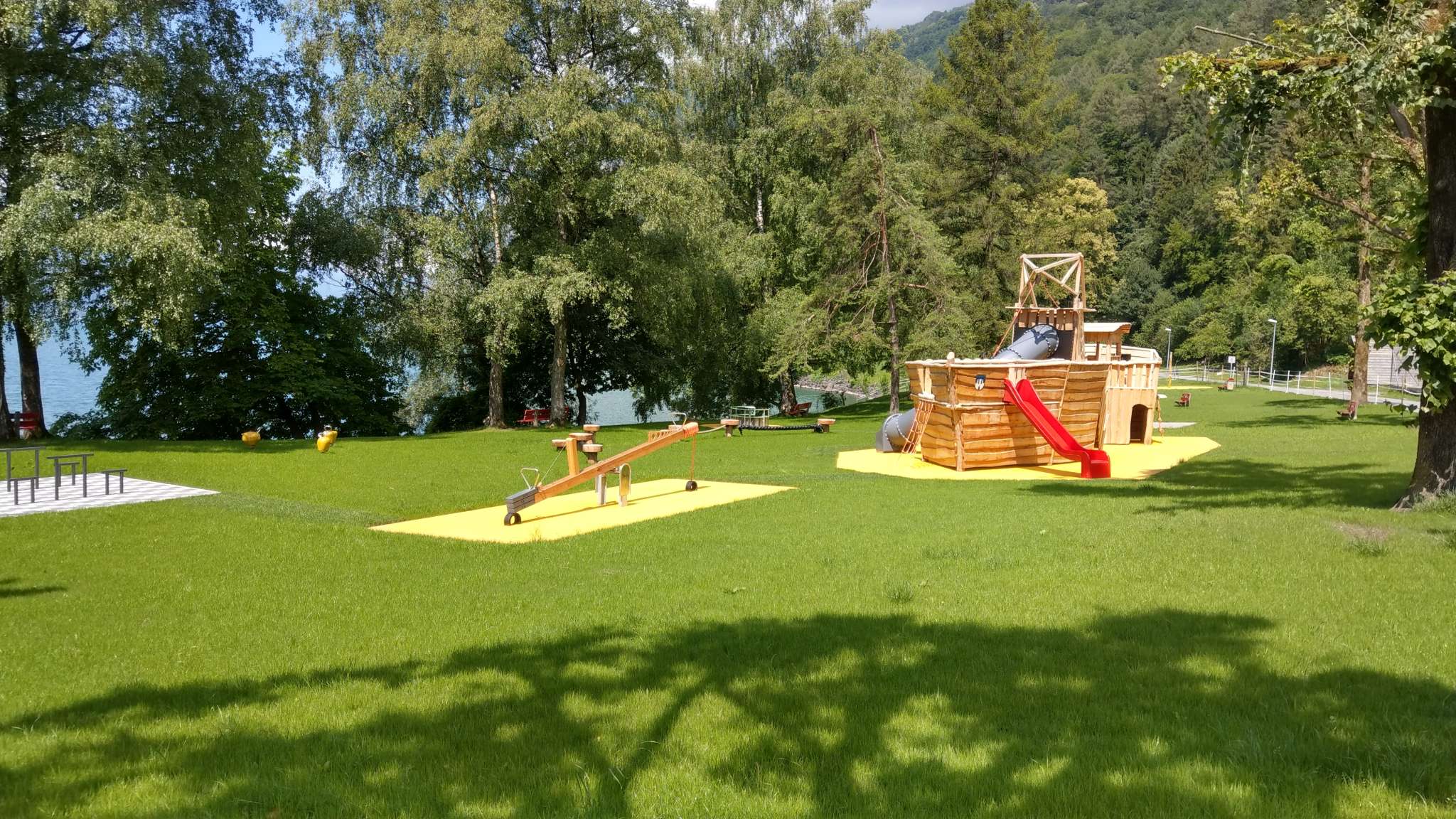 Wellen, Wind, Steine, Bäume und Wiesen: Der idyllische Strand am Seeufer von Walenstadt ist voller Leben – und das nicht erst seit gestern. Auf dem Spielplatz hat es ein grosses Holzschiff, auf dem du nach Herzenslust herumklettern kannst und per Rutschbahn-Express saust du später wieder hinunter. Auch Wippe, Schaukel, Balancierpfad und Geschicklichkeitsspiel greifen Elemente der Schifffahrt auf. Achte einmal draus, wo du überall Seile und Netze findest… Der Spielplatz ist Teil der grossen Liegewiese am rechten Seeufer. Hier hast du genügend Platz zum Auspowern.