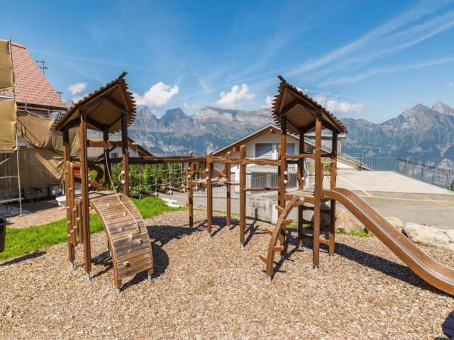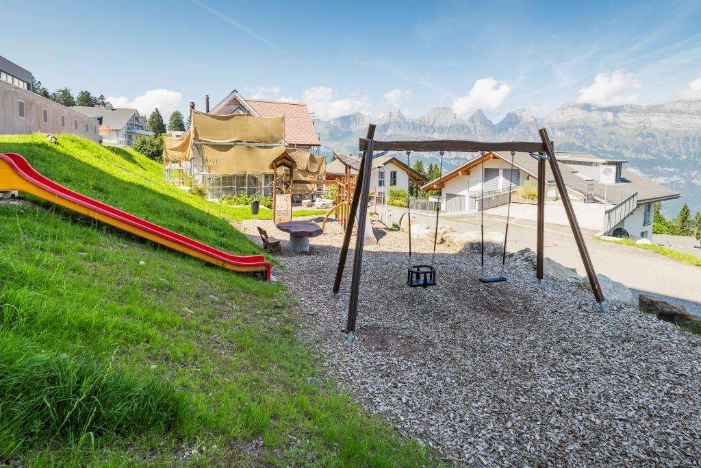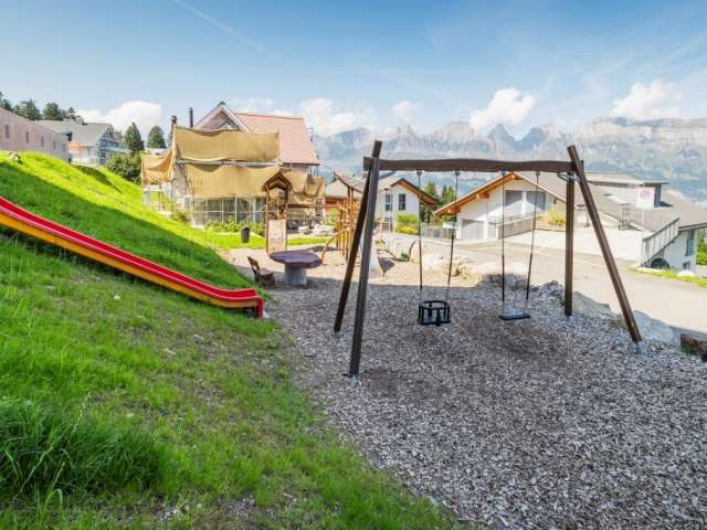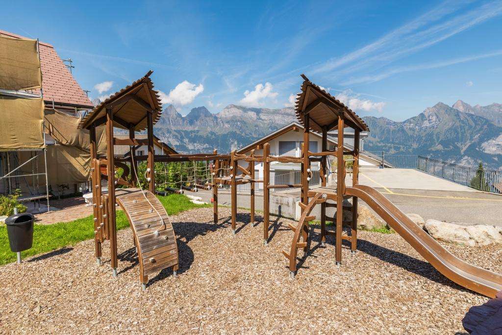 Auf dem Spielplatz des Restaurants Tannenboden bieten die Schaukeln Spielspass für Gross und auch die ganz Kleinen. Die Rutschbahnen sorgen für flotten Spass. Ein stabiler Kletterturm lädt Kinder zum Klettern und Erkunden ein und rundet das abwechslungsreiche Angebot ab.