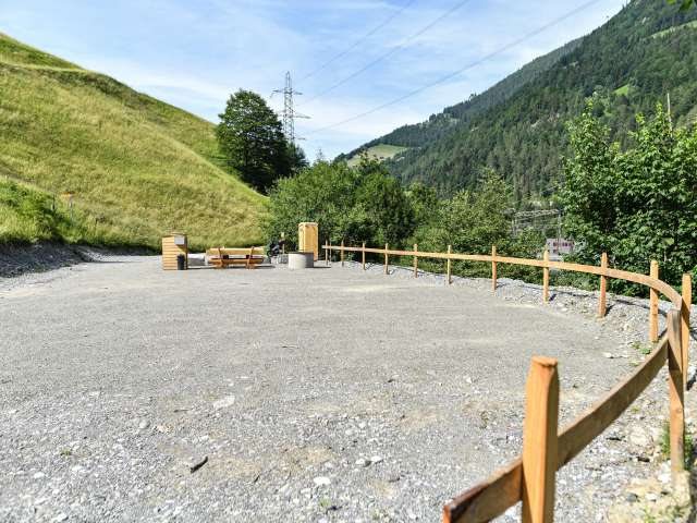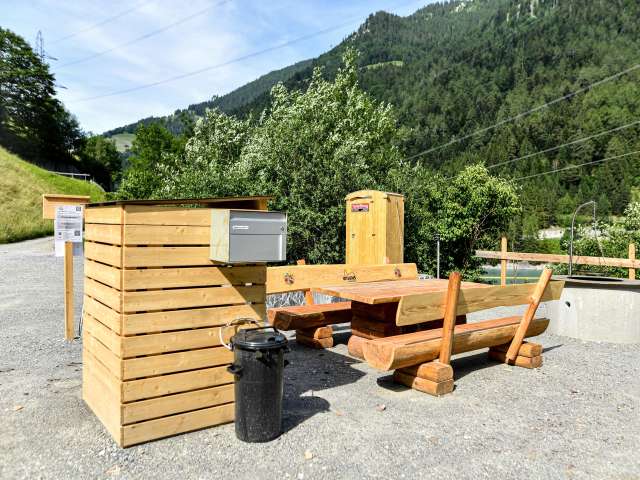 Der Platz liegt am Waldrand und am Läuibach. Er verfügt über 6-7 Stellplätze für Wohnmobile, Wohnwagen, Vans oder Zelte. Er ist mit Schotter befestigt, verfügt über ein WC und eine Grillstelle mit Sitzmöglichkeiten. Vom Stellplatz aus führen Wanderwege am See entlang, Richtung Valens/Vasön und auf den Vättnerberg. Der Dorfladen in Vasön ist nur 1 km entfernt und zu Fuss in ca. 10 Minuten und mit dem Auto in 2 Minuten erreichbar.