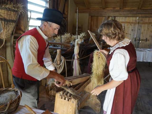 Vom Säen des Leins im Garten bis zum fertigen Stoff benötigt es mindestens 14 Schritte. Lassen Sie sich zeigen, was mit dem Lein nach 100 Tagen im Garten passiert und wie über Wochen der Lein zum fertigen Stoff verarbeitet wird.