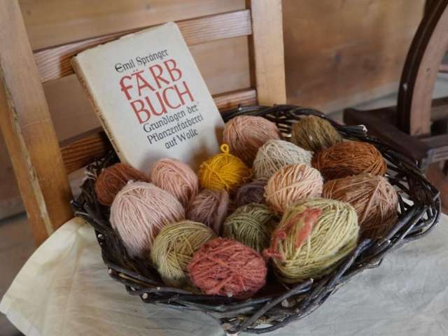 Zum Färben der Wolle können verschiedene Pflanzenteile wie Blätter, Blütenblätter, Beeren, Wurzeln oder teils Baumrinden verwendet werden. Nachdem die Wolle natürlich gebeizt und mit den Pflanzenteilen gekocht wurde, wird sie einige Wochen in die Sonne gestellt. Nach dem Spülen kann die Wolle gekardet, gesponnen, verzwirnt, verstrickt und verwoben werden. Lassen Sie sich die Schritte zeigen und staunen Sie über die Schönheit der natürlich gefärbten Wolle.