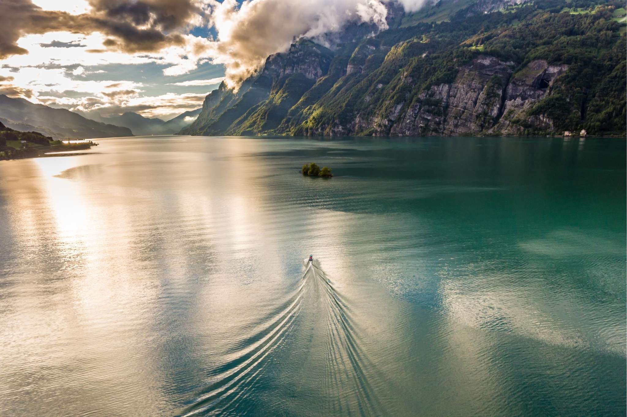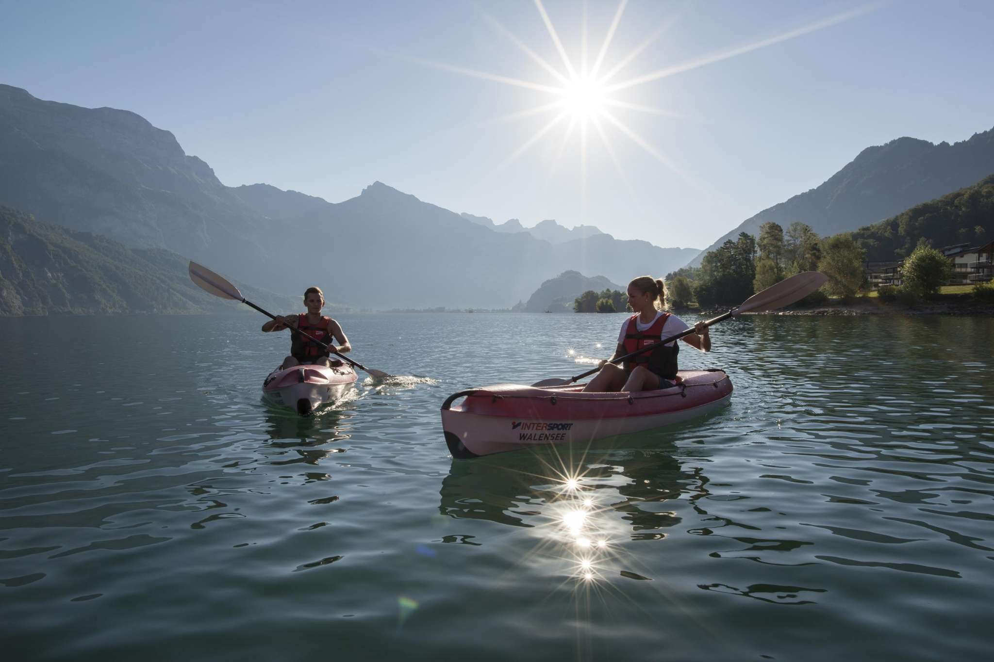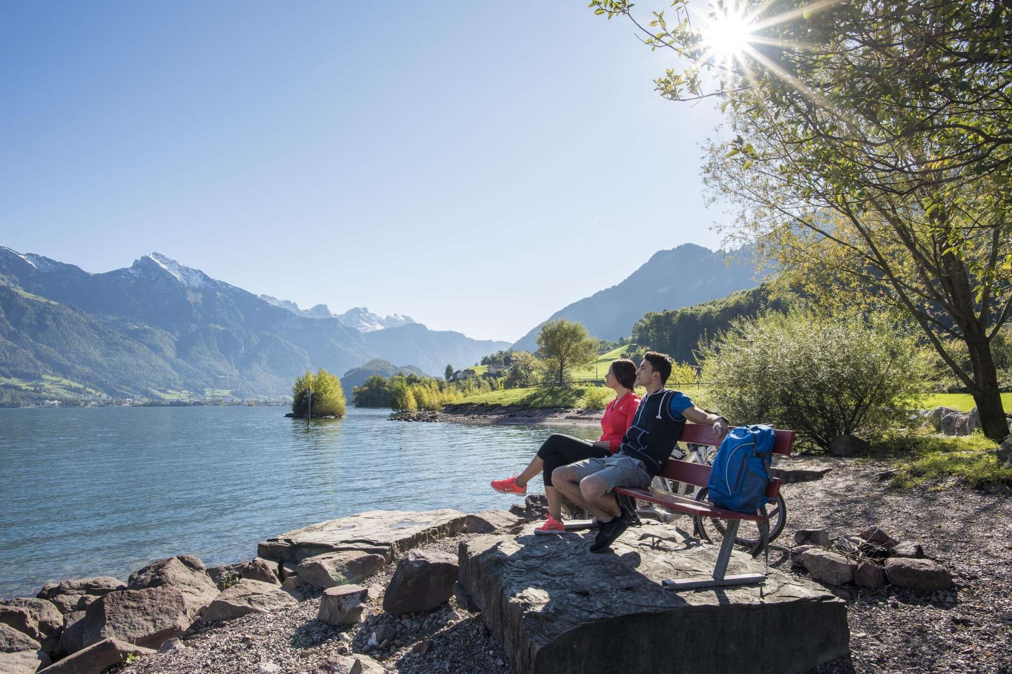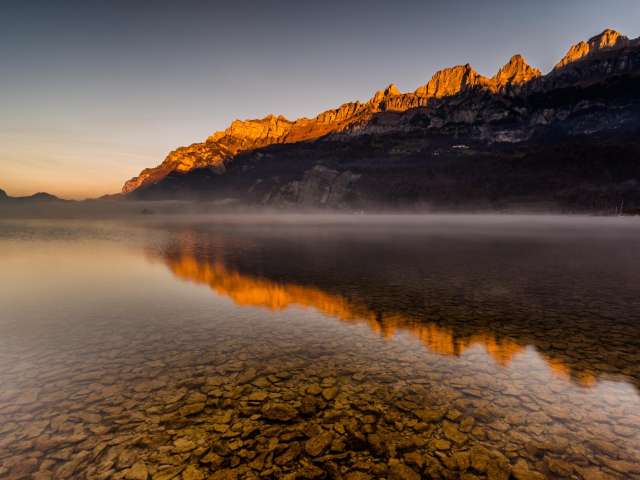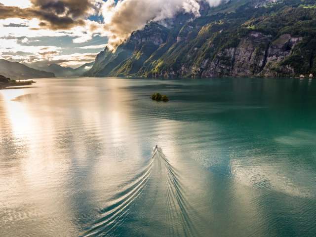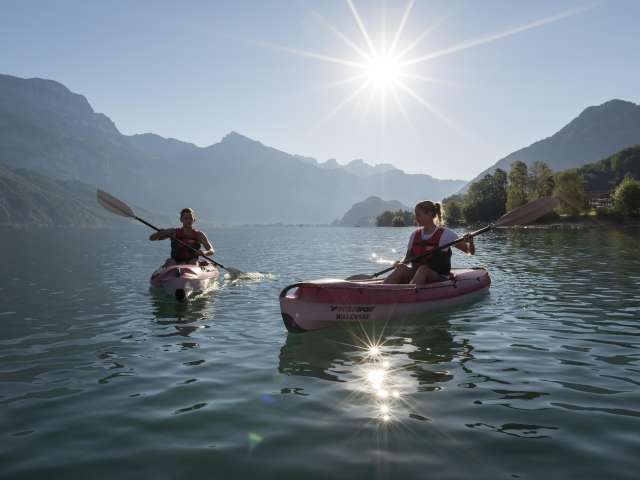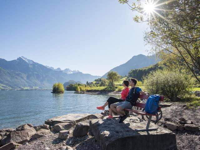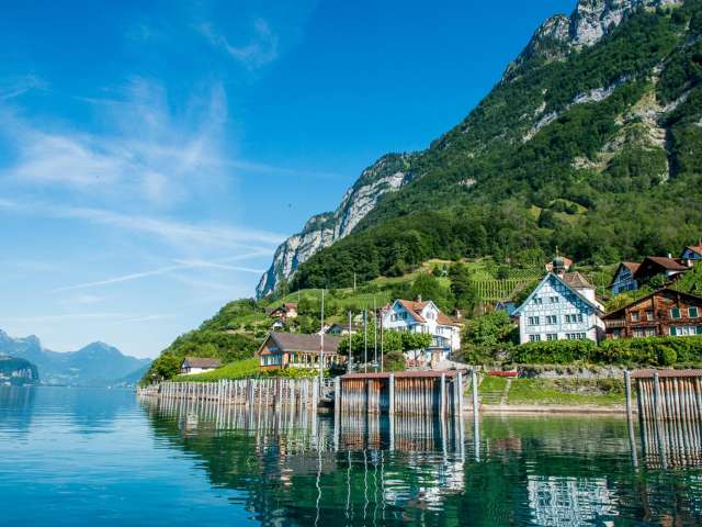 Der Walensee im Osten der Schweiz wird auf seiner Nordseite von den steil aufragenden Churfirsten begrenzt. Die Szenerie mit dem tiefblauen See und den steilen Felswänden erinnert an einen norwegischen Fjord. Eine Besonderheit stellt das autofreie Weindörfchen Quinten dar, das nur zu Fuss oder mit dem Walenseeschiff erreicht werden kann. Hier lässt das milde Klima Kiwis und Feigen gedeihen. Zwischen Weesen und Quinten locken zudem die dreistufigen Seerenbachfälle, welche zu den höchsten Wasserfällen der Schweiz zählen. Ob ein ausgedehnter Spaziergang am Seeufer, ein Sonnenbad am Strand oder eine gemütliche Schifffahrt, ob Wassersport, Wandern oder Biken: Die Gegend am Walensee ist wie gemacht für aktive Gäste.