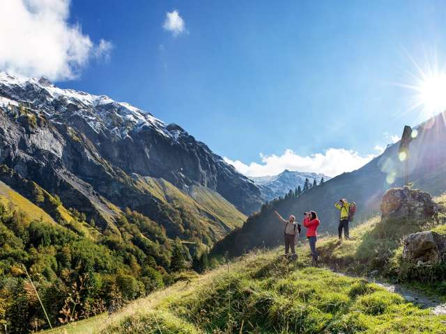 Wanderung durch die bergige Landschaft des Weisstannentals
