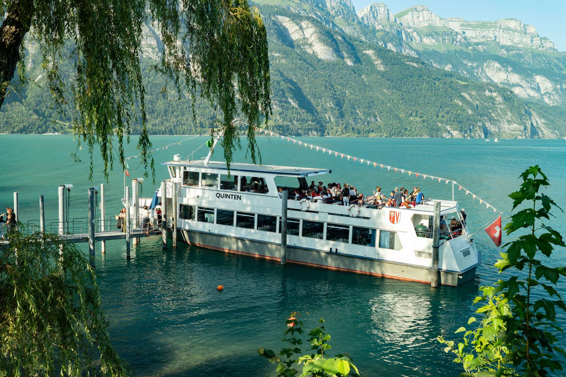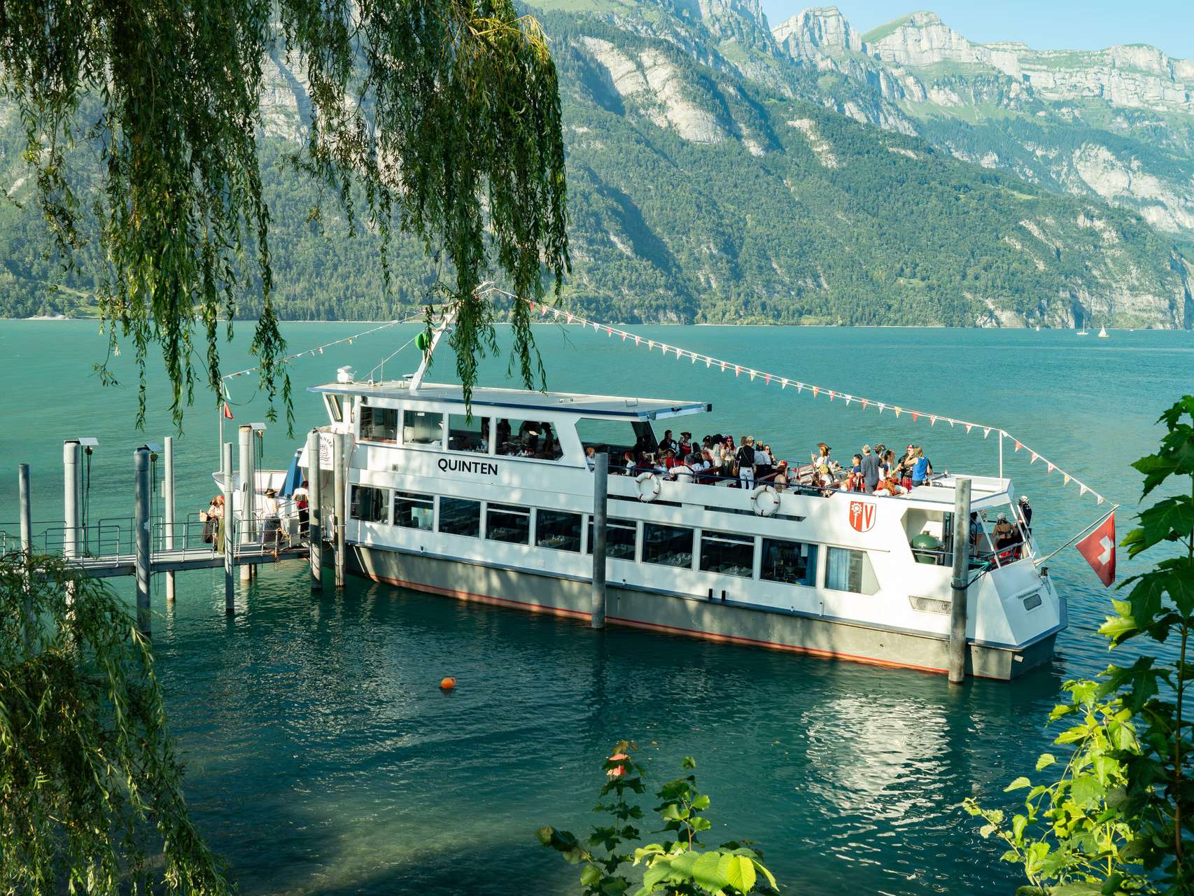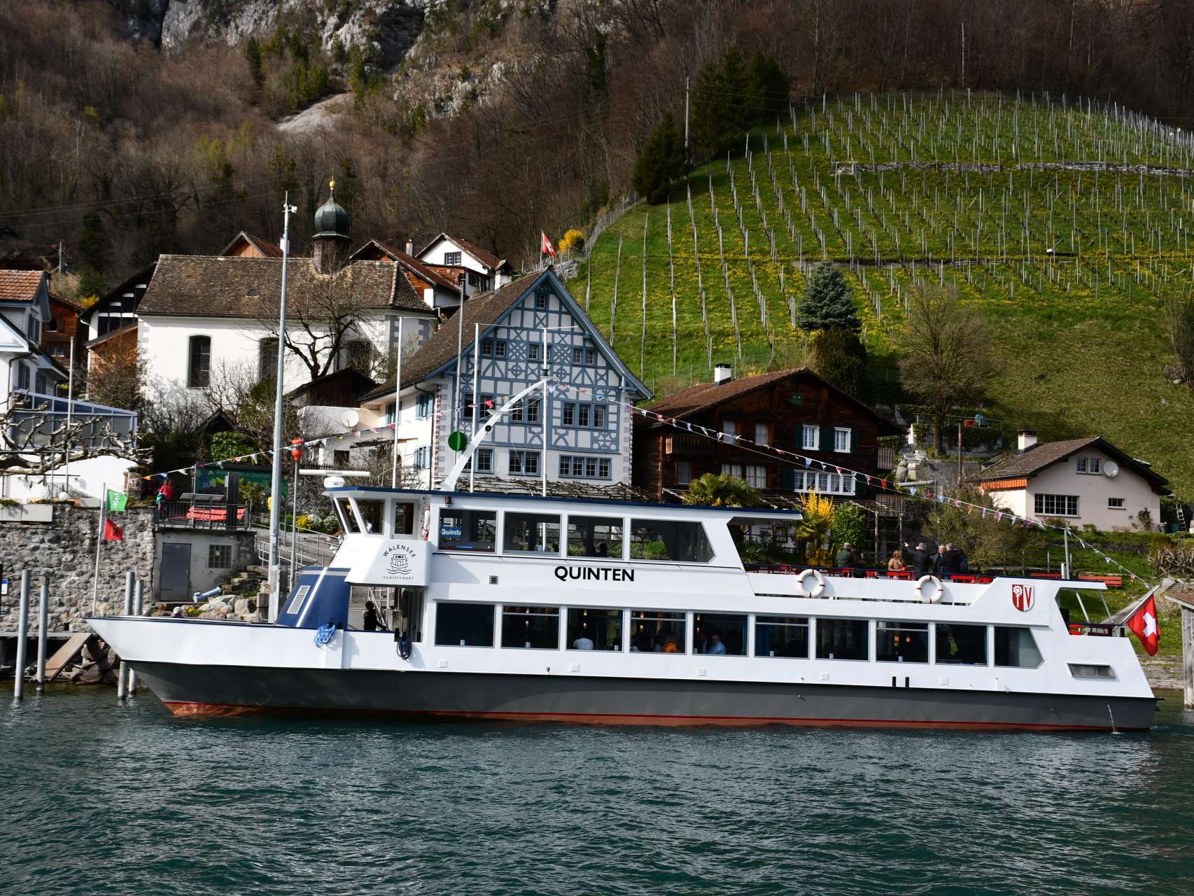 Unsere zweitgrösste Einheit, das Motorschiff "Quinten II", trägt stolz den Namen der idyllischen Ortschaft am Südhang der Churfirsten.